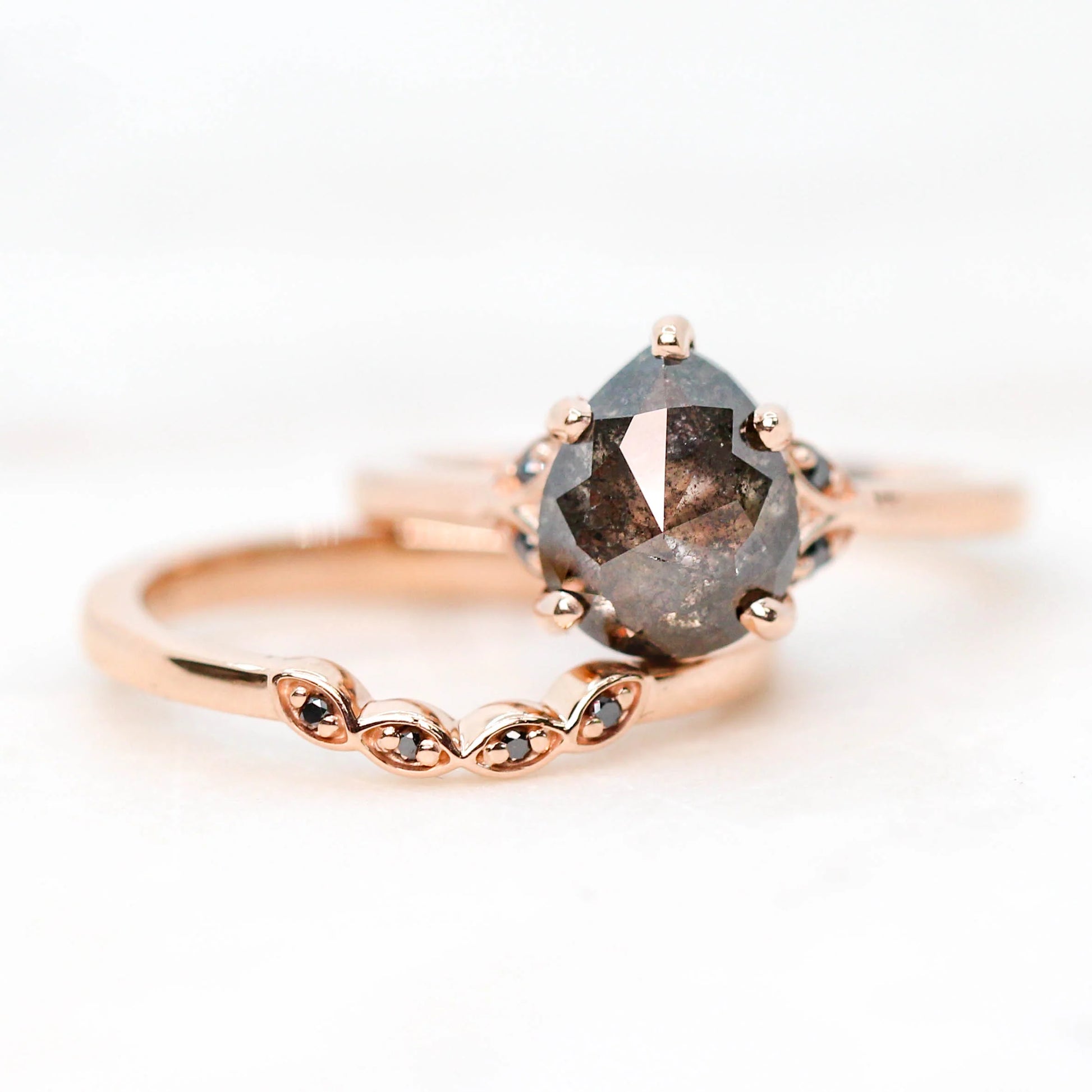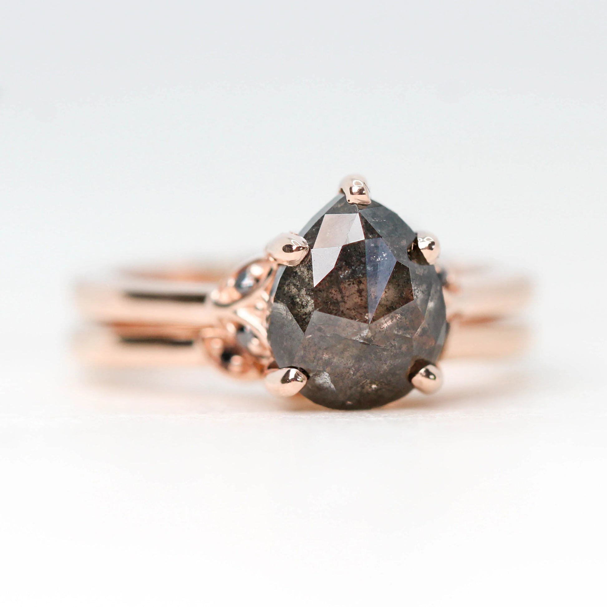 At Midwinter Co. Jewelry, we are a sustainable and tiny but trusted small business to create your unique and alternative bride type engagement rings. We are a leader in the salt and pepper diamond world, a quiet luxury brand that works one on one with you to design the most unique, gorgeous, modern jewelry. Midwinter Co. is also one of the only brands that specializes in acutely unique gemstones such as bi-color sapphires, teal green blue sapphires, mossy aquamarine, mossy agate, black tourmaline in quartz, gold in quartz, tourmaline in unique colors, gray sapphires, gray spinel, dark gray spinel, dark gray diamonds, black diamonds, black speckled diamonds, celestial diamonds, galaxy diamonds, dendritic agate, dendritic opal, dendritic quartz, branchy gemstones, quartz with black star hollandite, alexandrite, garnet, peridot with or without tourmaline, harmony quartz aka melody quartz aka seven stone quartz, morganite, emerald, topaz, misty white diamonds, white blue diamonds, opalescent diamonds, opalescent sapphires, parti sapphires, and more. Within our walls, we carry only a small select of stock as much of our work is custom. We custom design and personalize every ring setting/mounting to fit the unique gemstones and diamonds we carry. We can design you a custom ring set based off of a drawing or screen shots, aesthetics, themes, and more. We also have bridal necklaces, bridal earrings, mothers earrings, bridesmaids earrings, modern asymmetrical sapphire diamond earrings and more. Our small team is mighty and caring. Midwinter Co. is top rated with 5/5 100% 5 star on google. Drive 25-35 minutes from Philadelphia to visit our showroom to see our in stock pieces and stones. We can create: couples rings, rings for couples, rings for twins, twins rings, ring sets for couples, matching ring sets, custom stacking rings, custom stacking ring sets, bridal sets, custom right hand rings, custom mother gemstone rings, vintage style rings, modern style engagement rings, rings for the alt-bride, etc. We are LGBTQIA+ friendly, husband and wife owned. Our brand has been featured on E! News, Refinery 29, Vogue UK & magazines nation and internationally. We hope to be a small part of your story. Thank you for being a big part of ours!