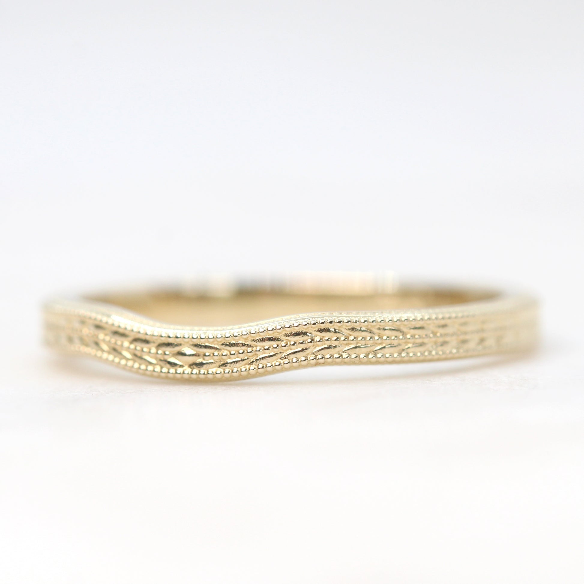 - The Edith band is made to match our Edith setting, and can be made a straight band or a contoured band.