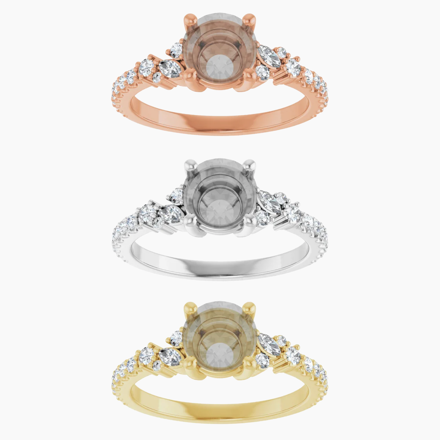 Please reach out if you are interested in any customizations to the setting, additional options for accent stones, or if you’re interested in a matching band.