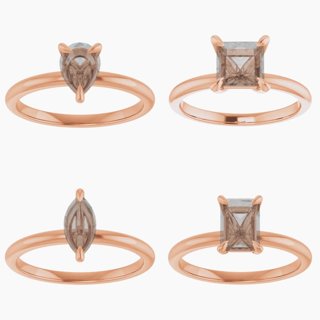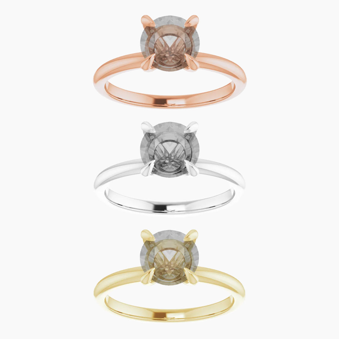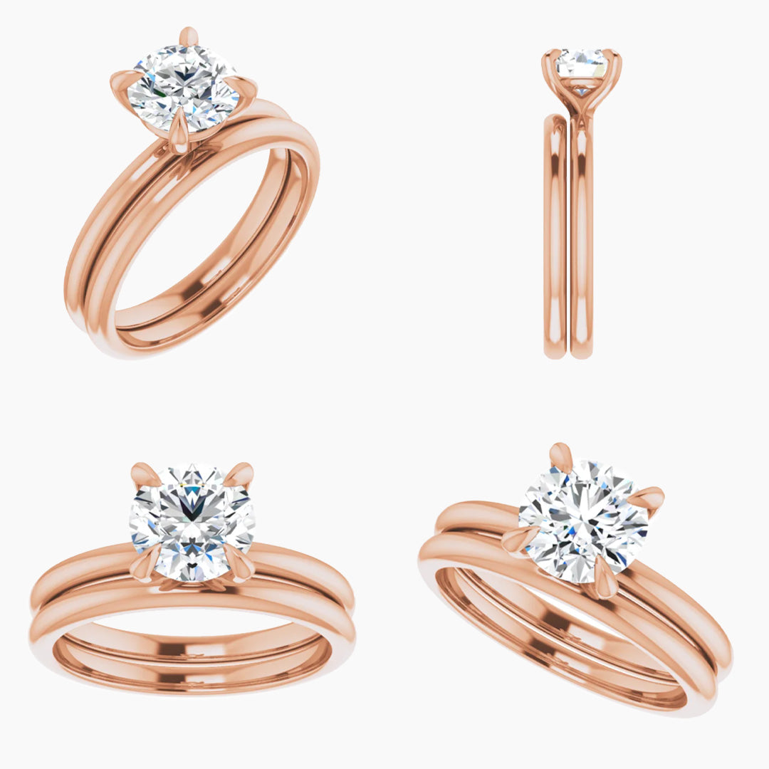 - A classic solitaire setting with a raised basket so you can stack all of your favorite bands.