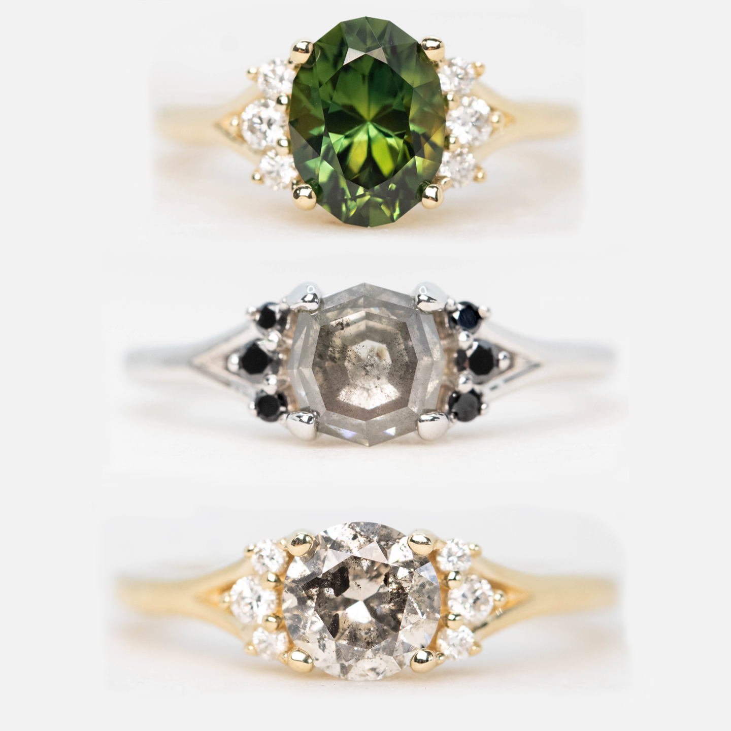 This is a personal decision that depends on what you personally value (sentiment of a birthstone vs. collector's value, for instance). As jewelers, we want you to think about how often it will be worn and how active you are. We understand that there has to be a balance of aesthetic versus durability when designing such an important piece, but we recommend the strongest stones that are 9 Mohs or above for everyday wear - diamond, moissanite, and sapphire.