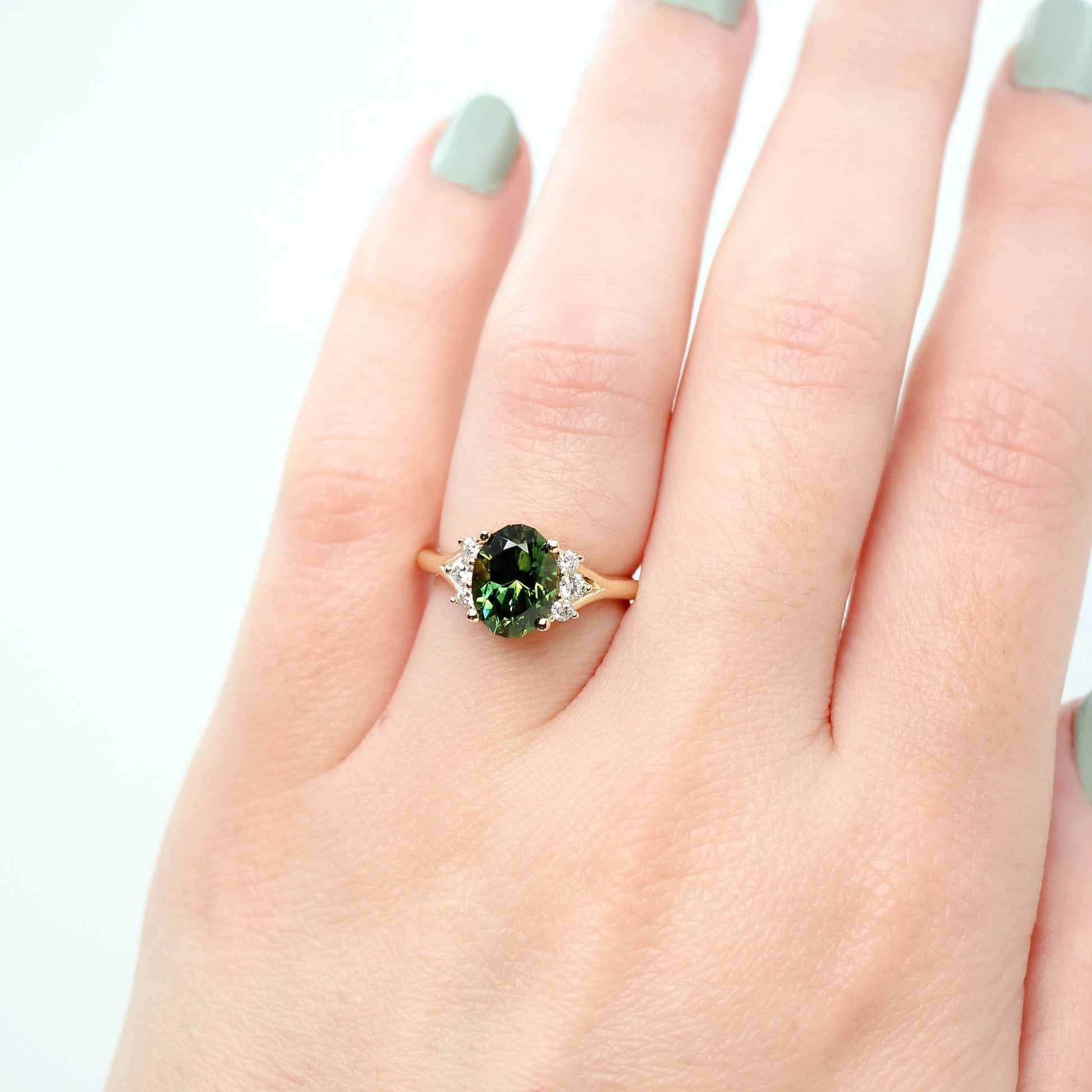 Pieces that are customized cannot be returned, and anything customized for you, is just for you. Please consider coming to visit us at our studio in Wilmington, Delaware to view stones and settings in person! We are also happy to do a Zoom appointment or send videos to help you with your purchase.