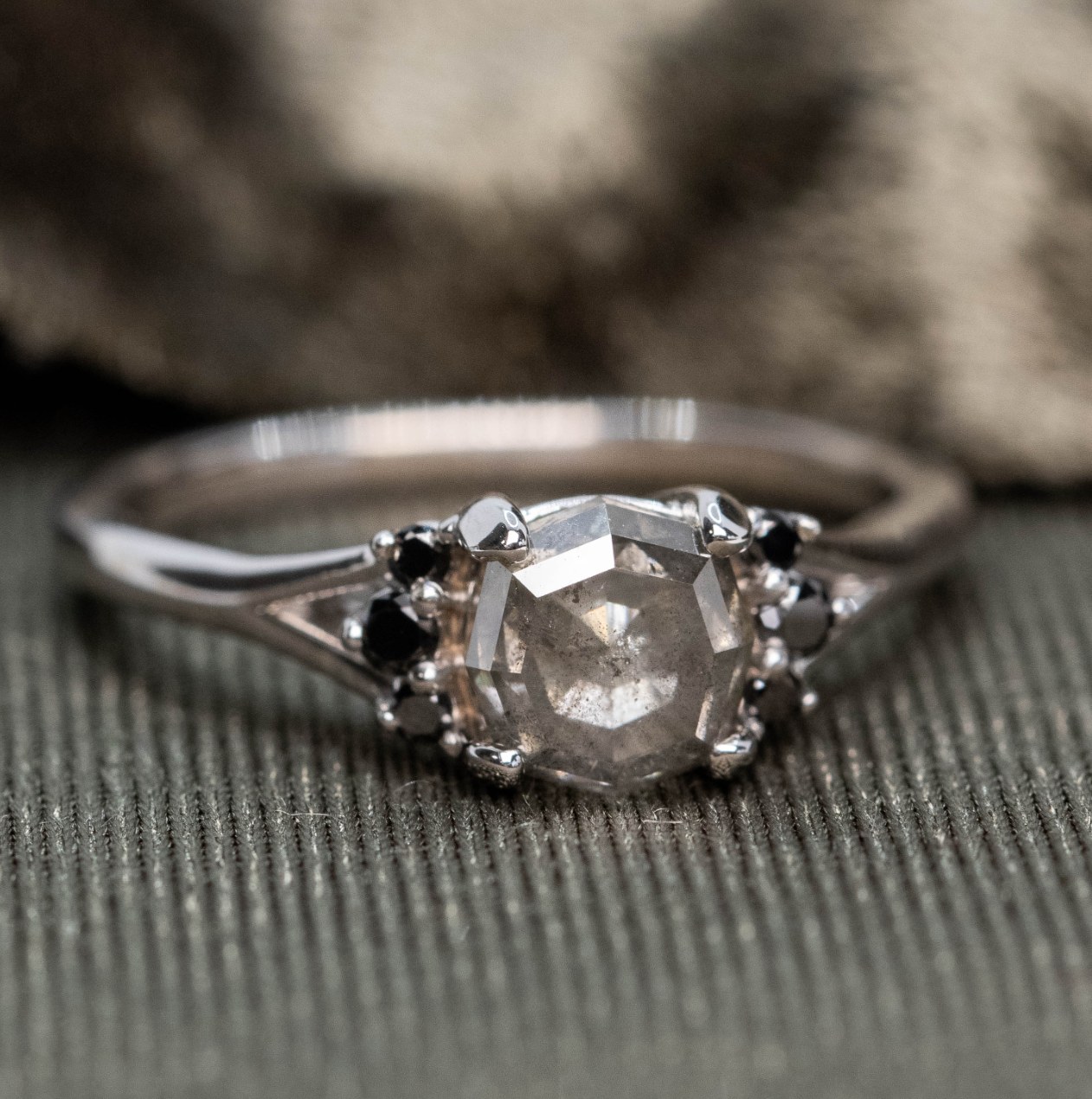 We often work with amazing and stunning natural diamonds that we call Celestial diamonds, which the industry sometimes calls salt and pepper diamonds, or galaxy diamonds. We worked with these diamonds before they were somewhat normal on the scene. Everything about the diamond is a real diamond, and possibly even more real than your "standard" diamond that may have been heat treated or had its inclusions microscopically removed/filled. The perfectly imperfect stones are each unique, and since they are not your standard mass-purchased stone in our industry, it isn't worth the effort for "bad guys" to make fakes that look like these.