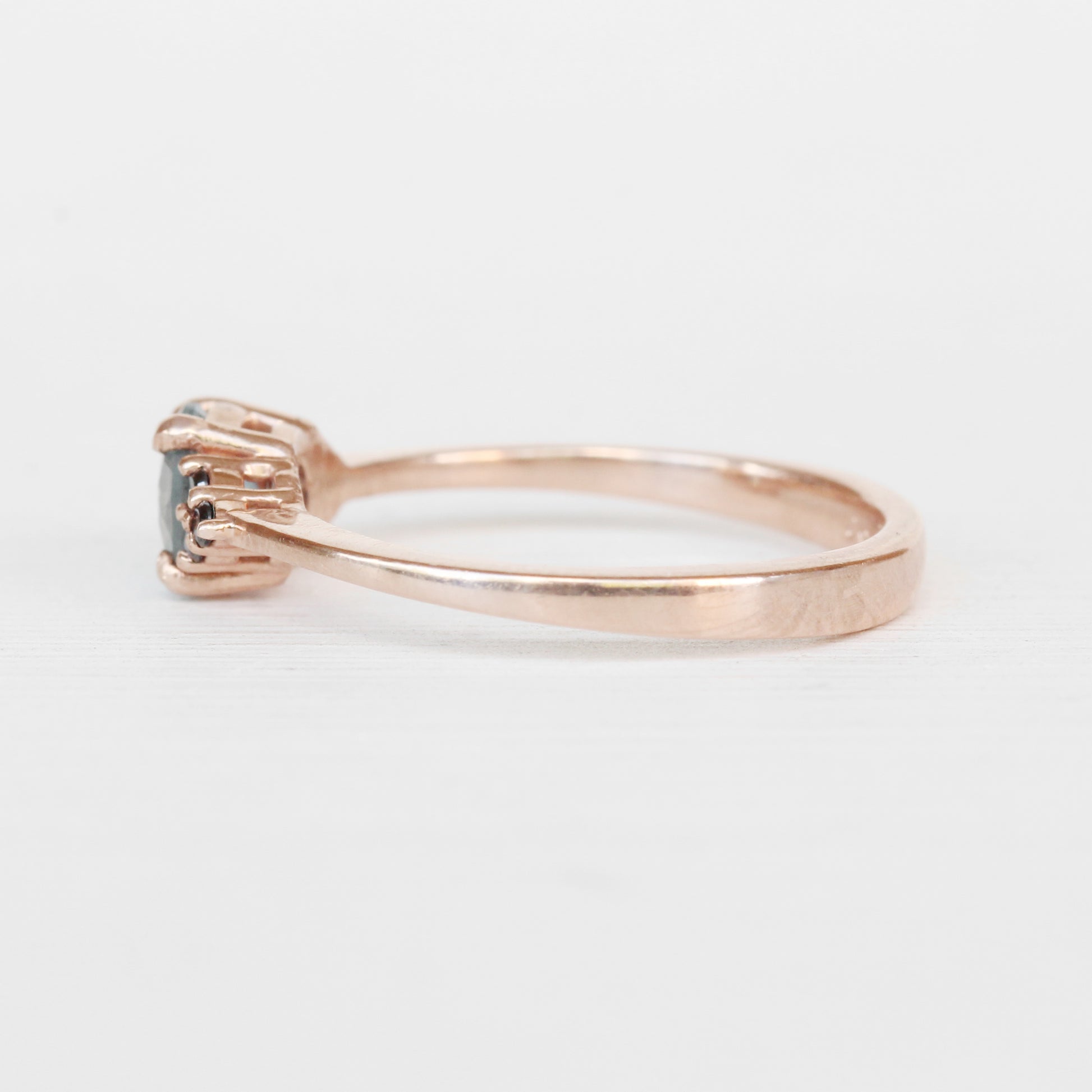Our metals are 90% or more recycled and can be recycled again. The Midwinter Co. studio is tiny and takes steps to be eco-friendly. We work with imperfect diamonds that take less impact on the earth to obtain. We work with our clients to create new jewelry by reusing their existing Midwinter Co. stones and metals. We give 10% of our profits to charities and work alongside small businesses to create our pieces.
