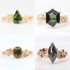 This is a personal decision that depends on what you personally value (sentiment of a birthstone vs. collector's value, for instance). As jewelers, we want you to think about how often it will be worn and how active you are. We understand that there has to be a balance of aesthetic versus durability when designing such an important piece, but we recommend the strongest stones that are 9 Mohs or above for everyday wear - diamond, moissanite, and sapphire.