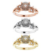 - Accent stones include three round stones embedded on each side of the center stone ranging from 1.3-1.5mm.