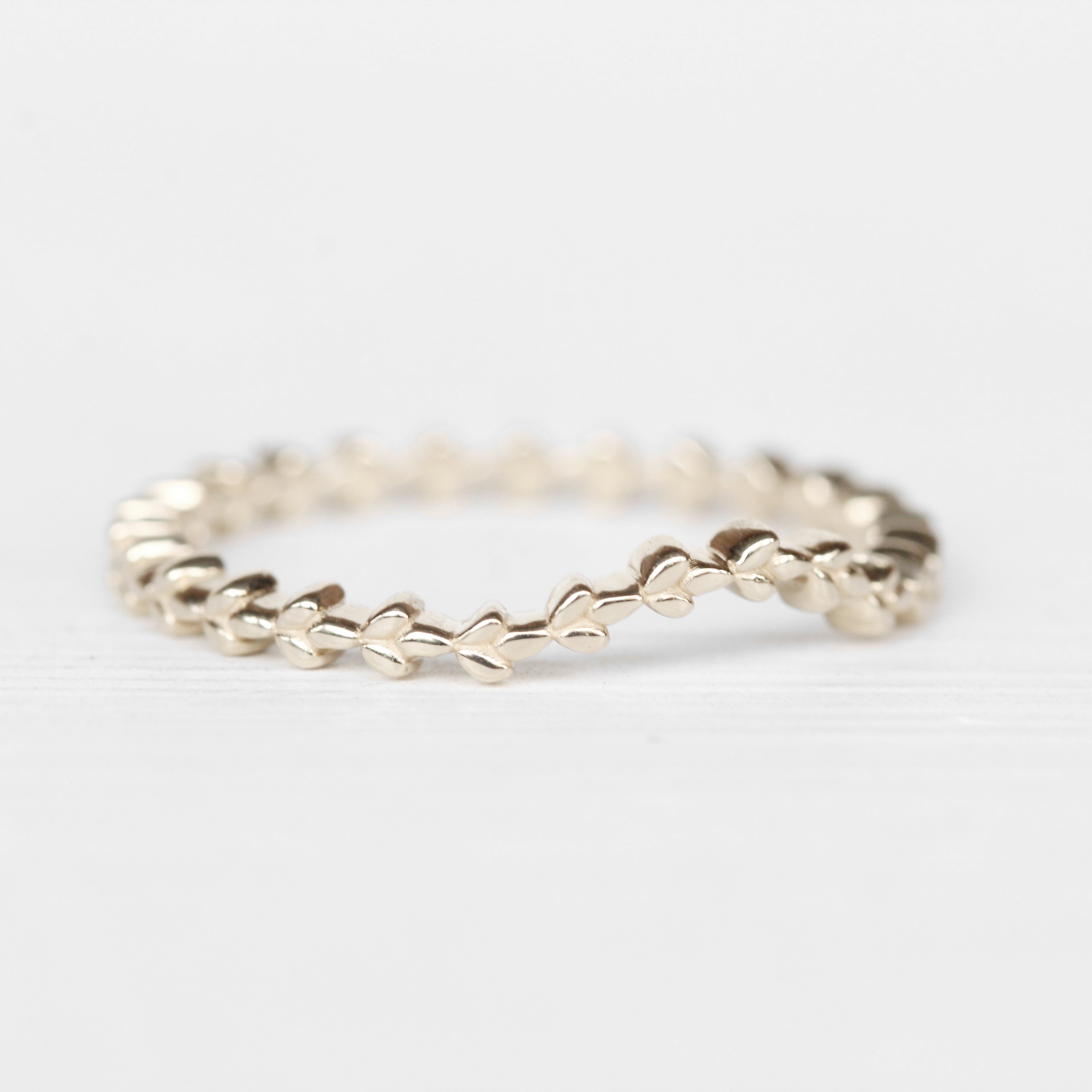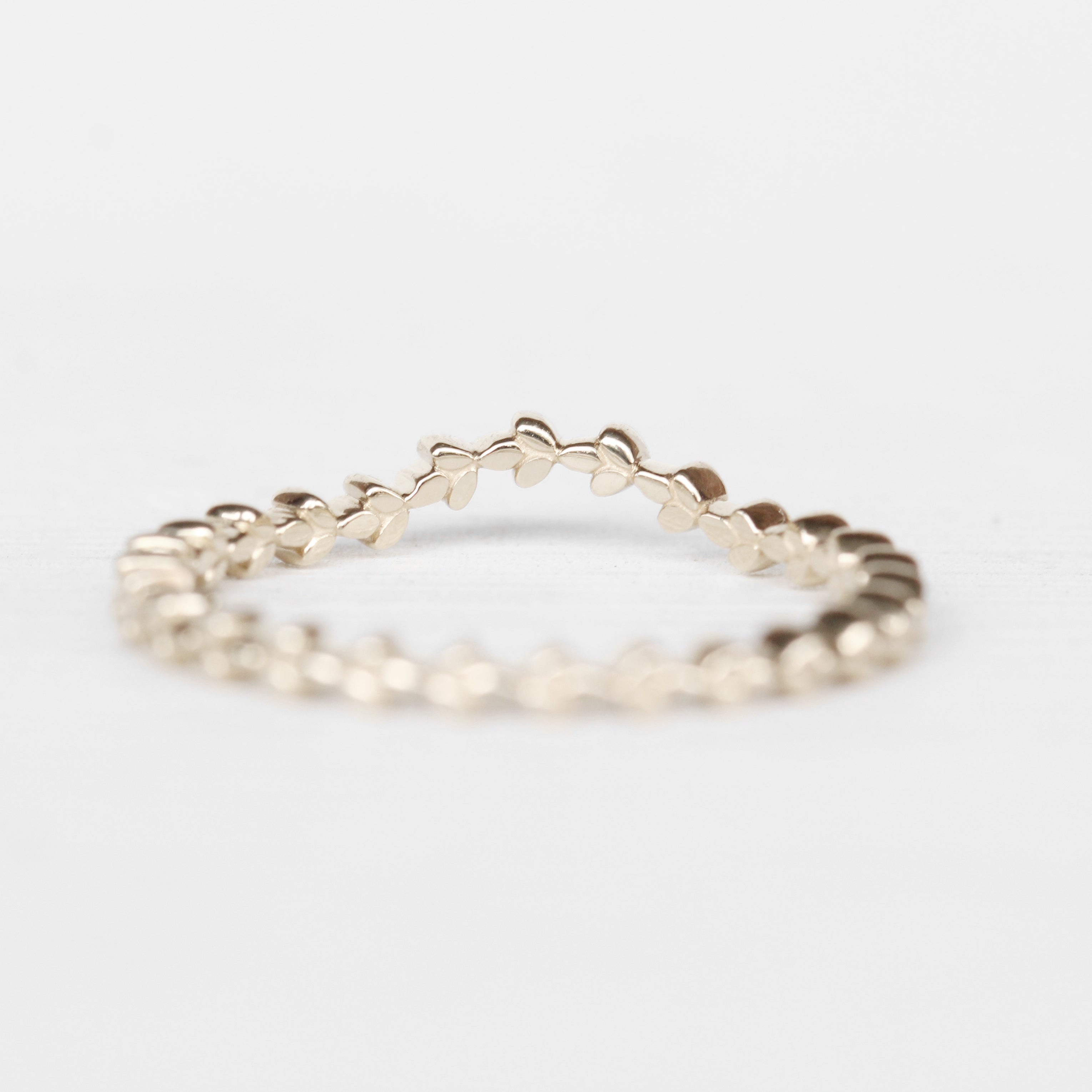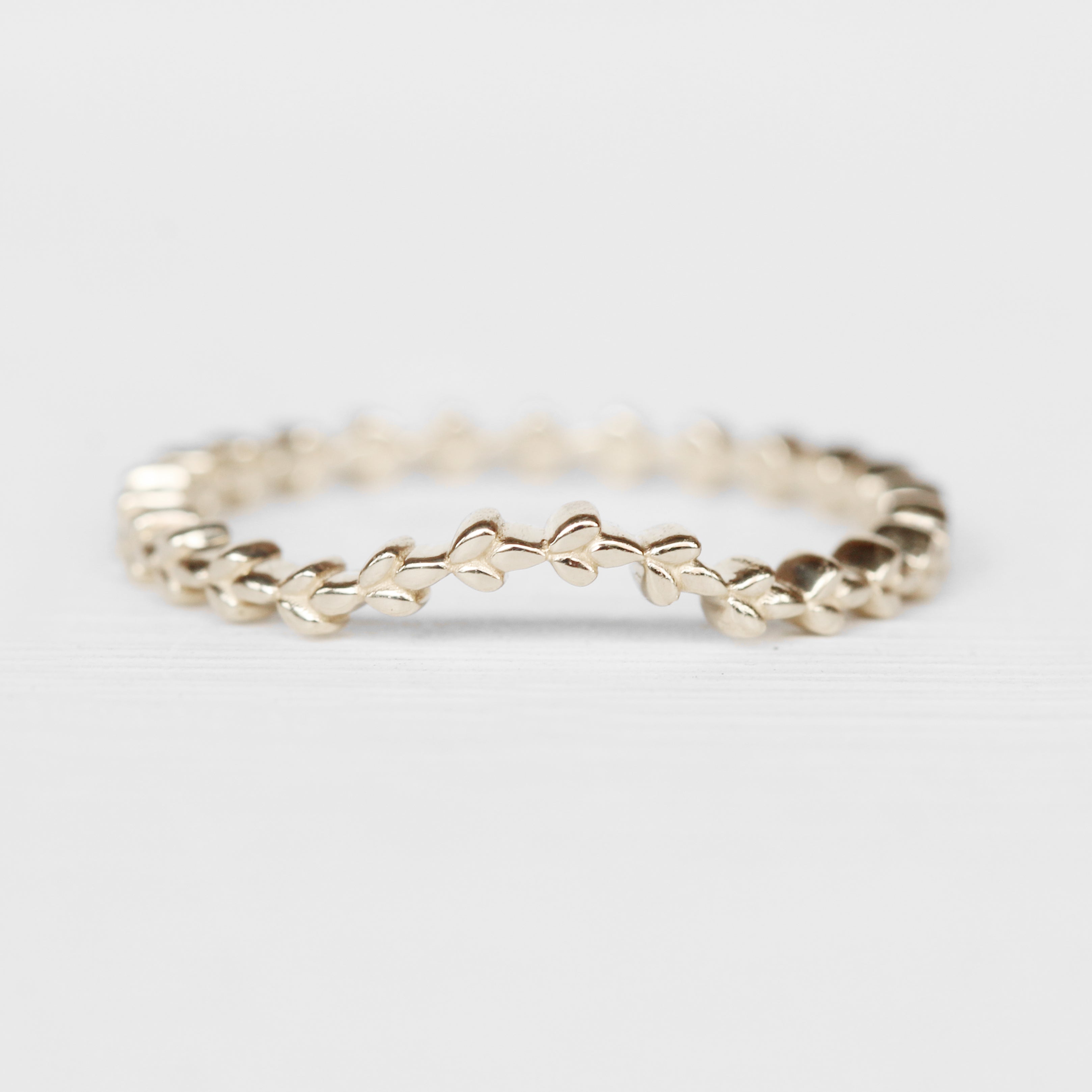 - This is an eternity-style band, with the leaf-like design completely around the band. Please note that this requires exact ring sizing, as sizing up or down is not optional. This ring is exempt from our resizing policy.