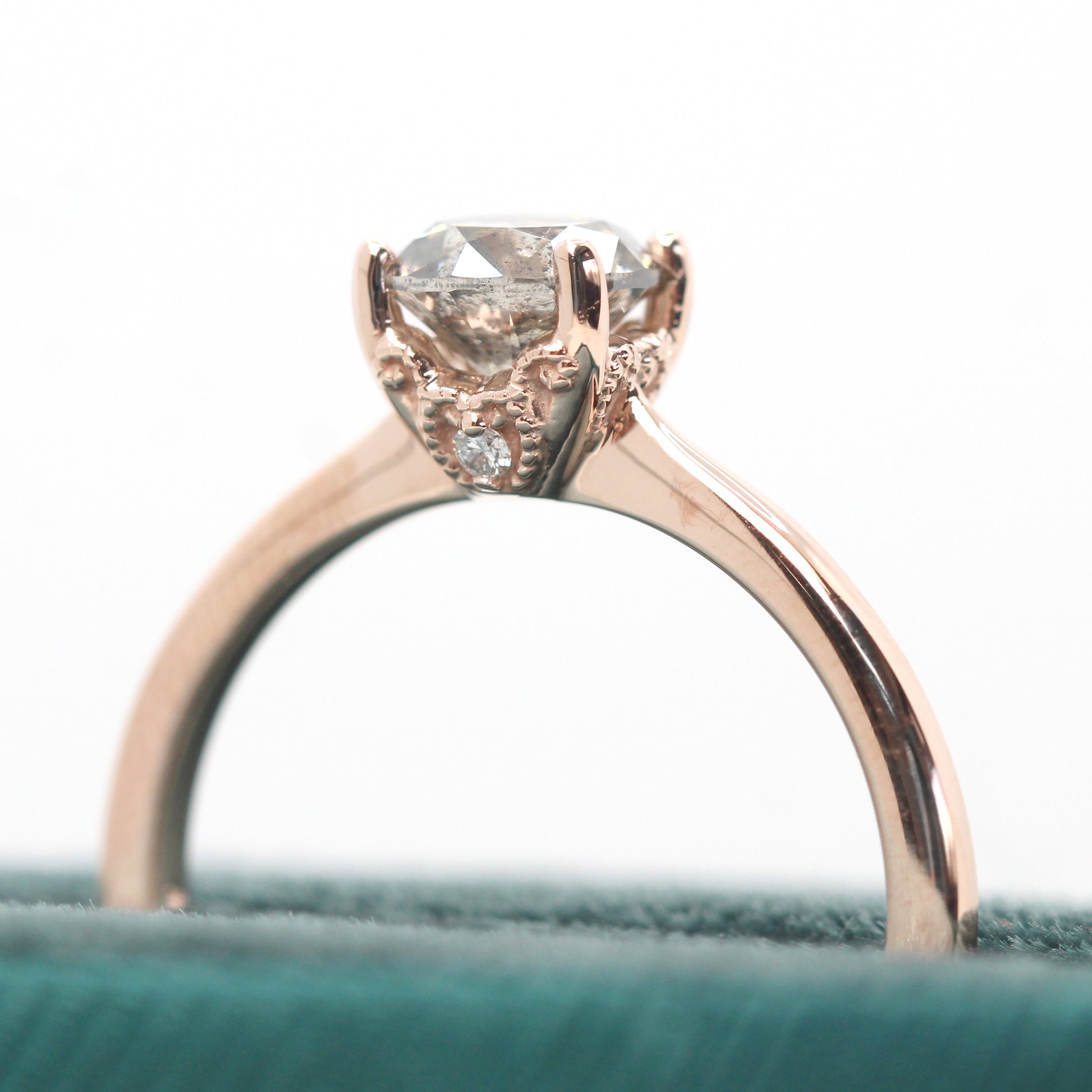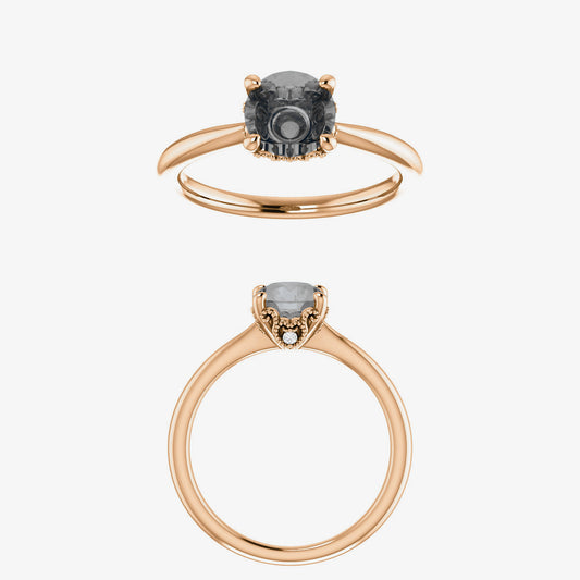 • A classic solitaire look with hidden stones and dainty filigree details.