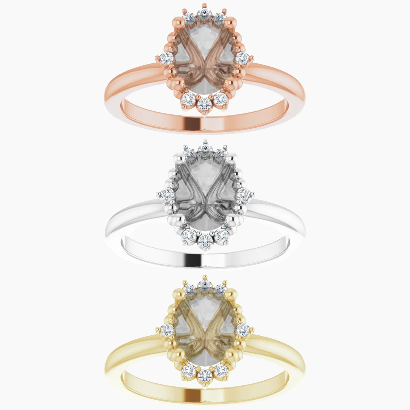 Please reach out if you are interested in any customizations to the setting, additional options for accent stones, or if you’re interested in a matching band.