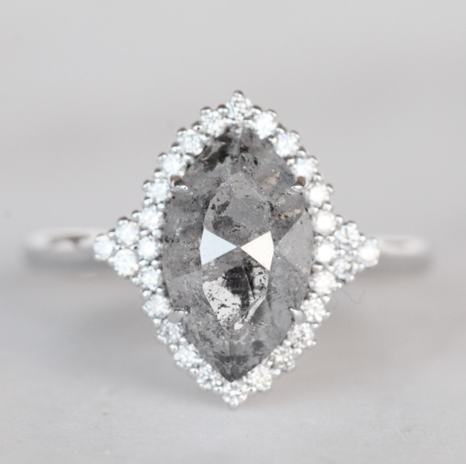 At Midwinter Co. Jewelry, we are a sustainable and tiny but trusted small business to create your unique and alternative bride type engagement rings. We are a leader in the salt and pepper diamond world, a quiet luxury brand that works one on one with you to design the most unique, gorgeous, modern jewelry. Midwinter Co. is also one of the only brands that specializes in acutely unique gemstones such as bi-color sapphires, teal green blue sapphires, mossy aquamarine, mossy agate, black tourmaline in quartz, gold in quartz, tourmaline in unique colors, gray sapphires, gray spinel, dark gray spinel, dark gray diamonds, black diamonds, black speckled diamonds, celestial diamonds, galaxy diamonds, dendritic agate, dendritic opal, dendritic quartz, branchy gemstones, quartz with black star hollandite, alexandrite, garnet, peridot with or without tourmaline, harmony quartz aka melody quartz aka seven stone quartz, morganite, emerald, topaz, misty white diamonds, white blue diamonds, opalescent diamonds, opalescent sapphires, parti sapphires, and more. Within our walls, we carry only a small select of stock as much of our work is custom. We custom design and personalize every ring setting/mounting to fit the unique gemstones and diamonds we carry. We can design you a custom ring set based off of a drawing or screen shots, aesthetics, themes, and more. We also have bridal necklaces, bridal earrings, mothers earrings, bridesmaids earrings, modern asymmetrical sapphire diamond earrings and more. Our small team is mighty and caring. Midwinter Co. is top rated with 5/5 100% 5 star on google. Drive 25-35 minutes from Philadelphia to visit our showroom to see our in stock pieces and stones. We can create: couples rings, rings for couples, rings for twins, twins rings, ring sets for couples, matching ring sets, custom stacking rings, custom stacking ring sets, bridal sets, custom right hand rings, custom mother gemstone rings, vintage style rings, modern style engagement rings, rings for the alt-bride, etc. We are LGBTQIA+ friendly, husband and wife owned. Our brand has been featured on E! News, Refinery 29, Vogue UK & magazines nation and internationally. We hope to be a small part of your story. Thank you for being a big part of ours!