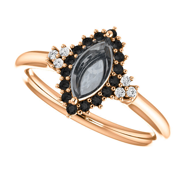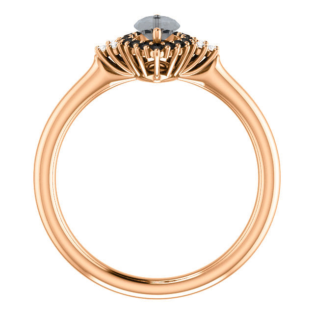 These diamonds are called "Salt and Pepper" by the industry. We began using these diamonds before they had an industry name, and have always called them Celestial diamonds.