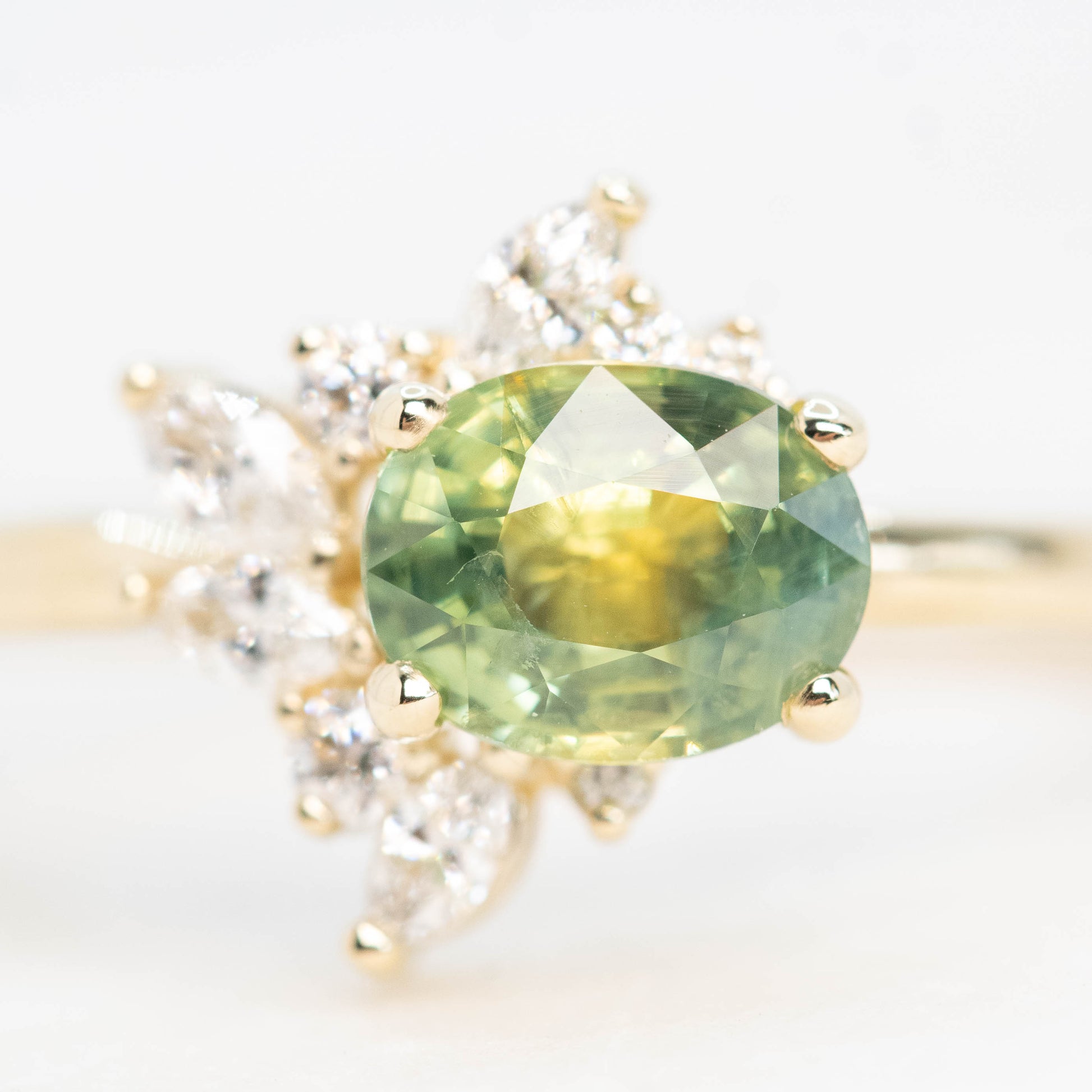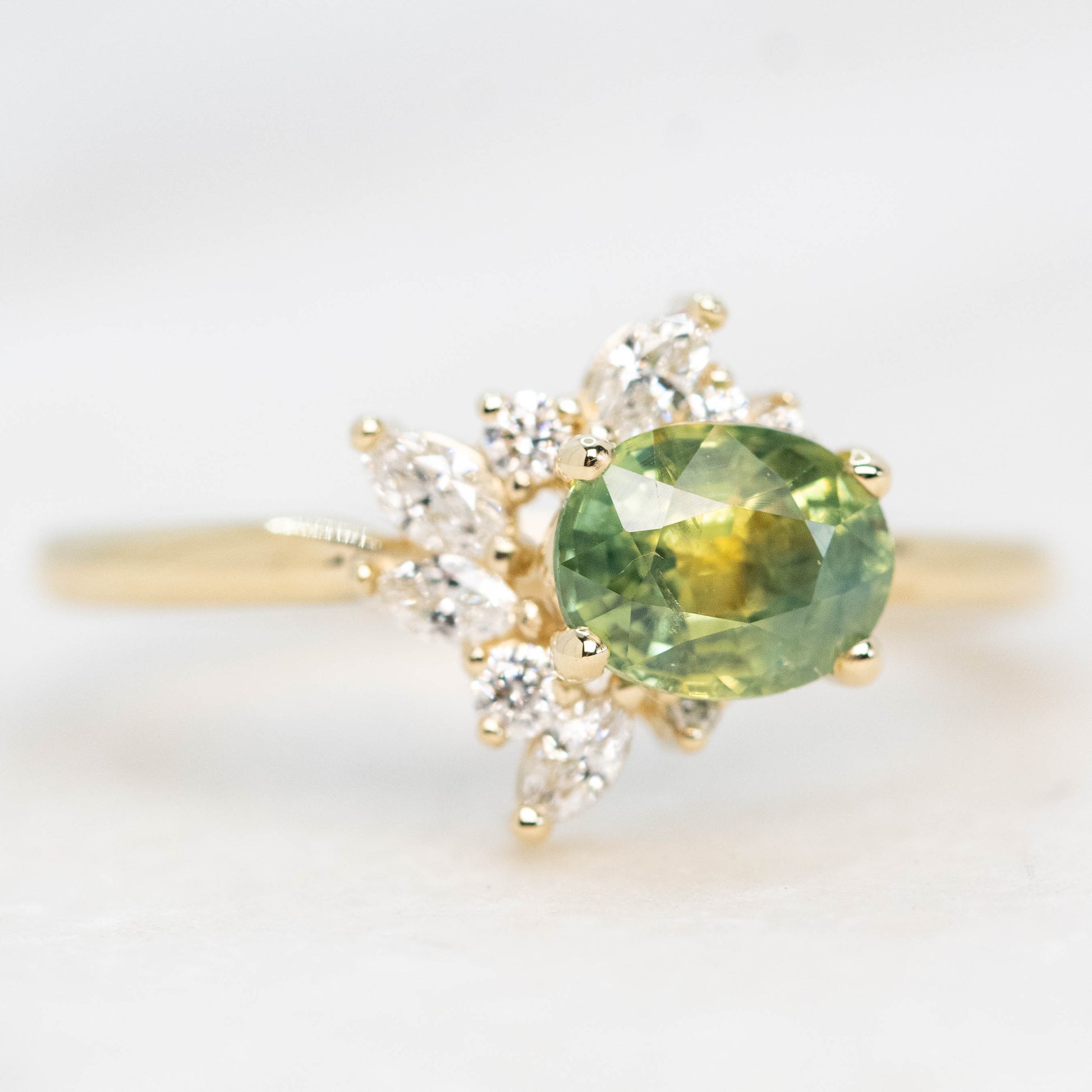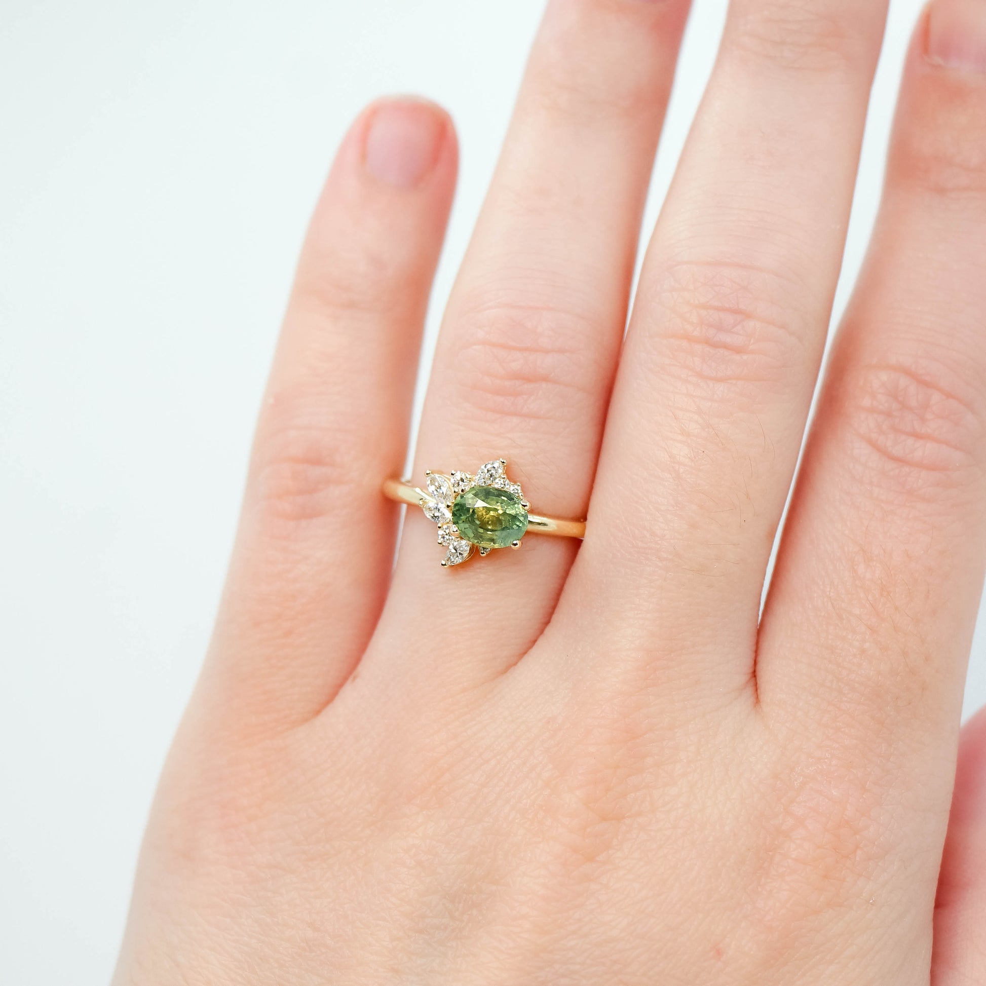 Amaya Ring with a 1.25 Carat Green Oval Sapphire and White Accent Diamonds in 14k Yellow Gold - Ready to Size and Ship