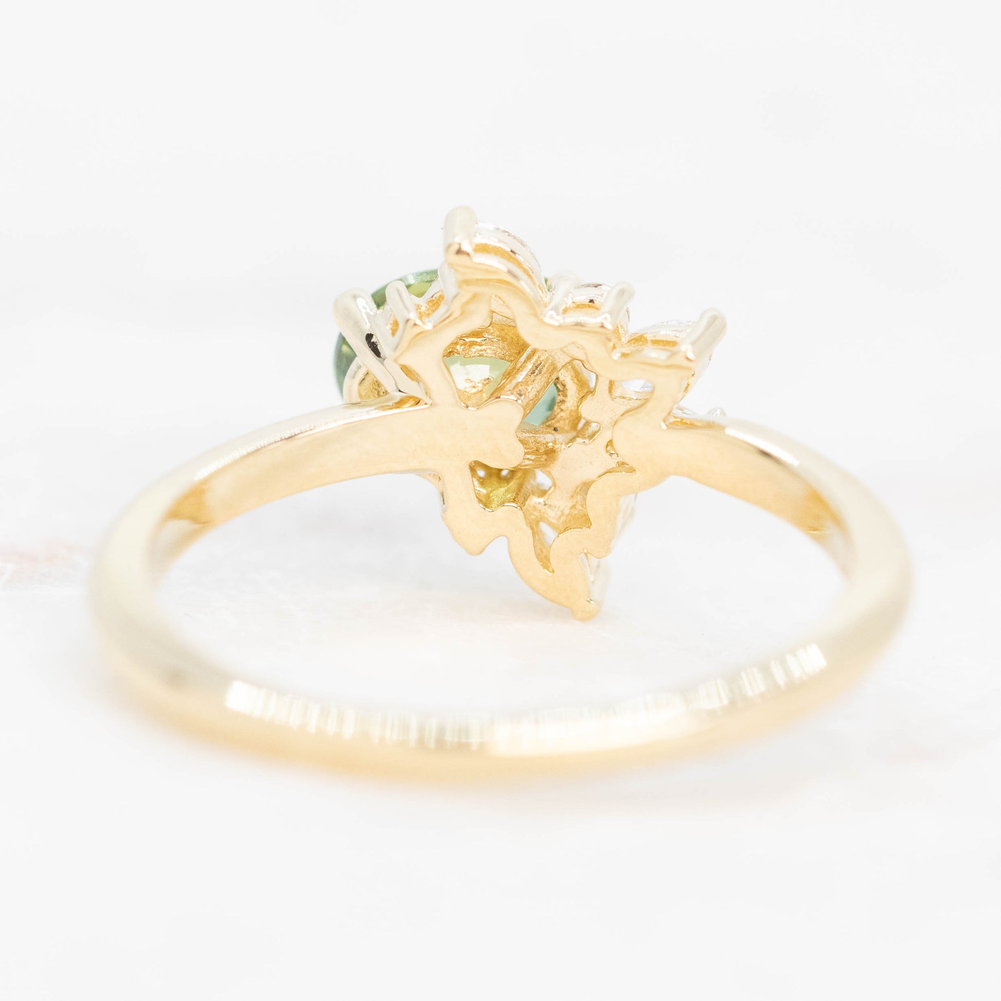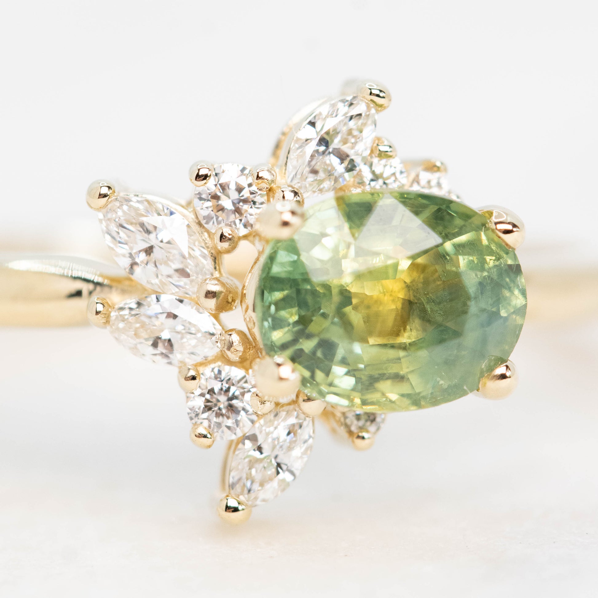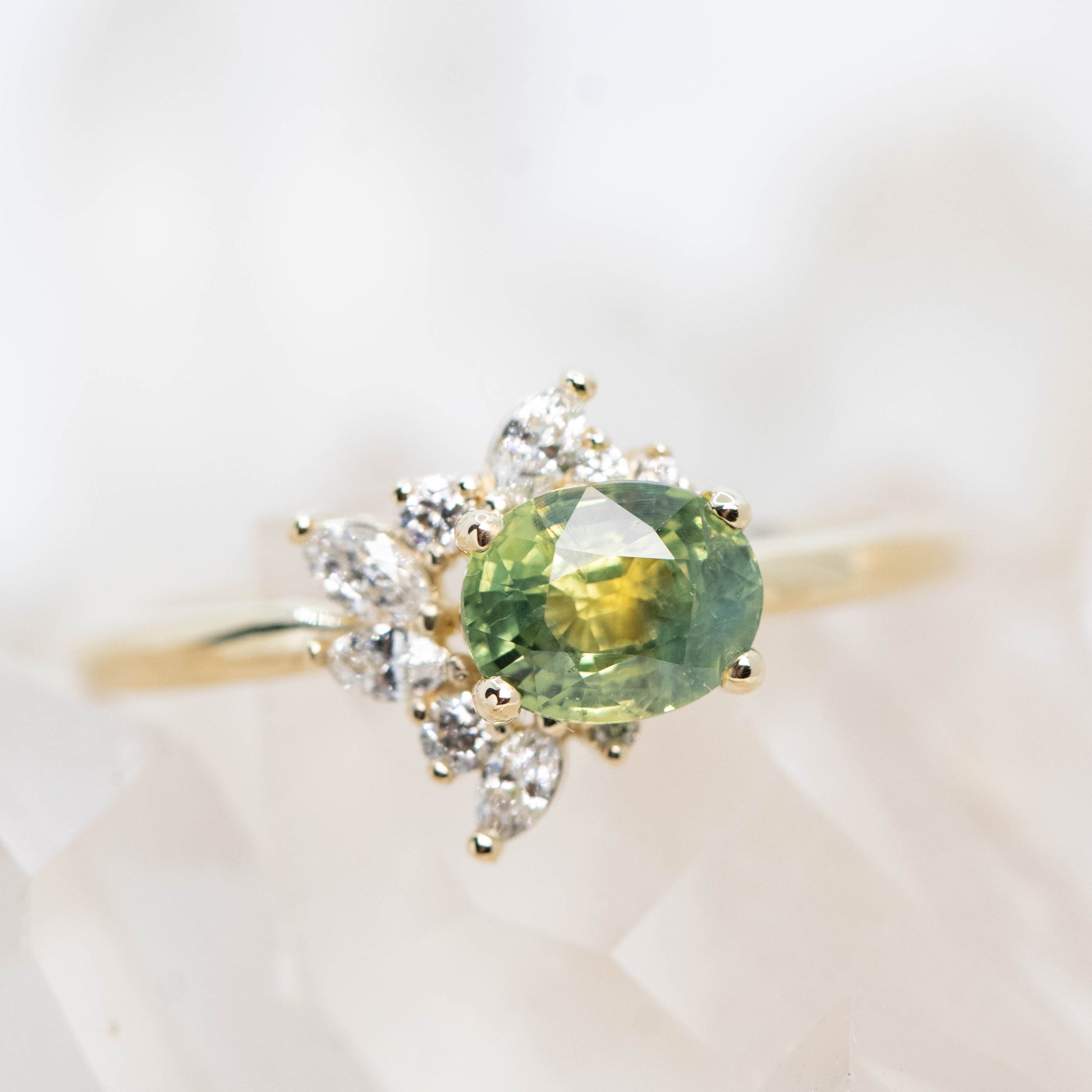 Amaya Ring with a 1.25 Carat Green Oval Sapphire and White Accent Diamonds in 14k Yellow Gold - Ready to Size and Ship