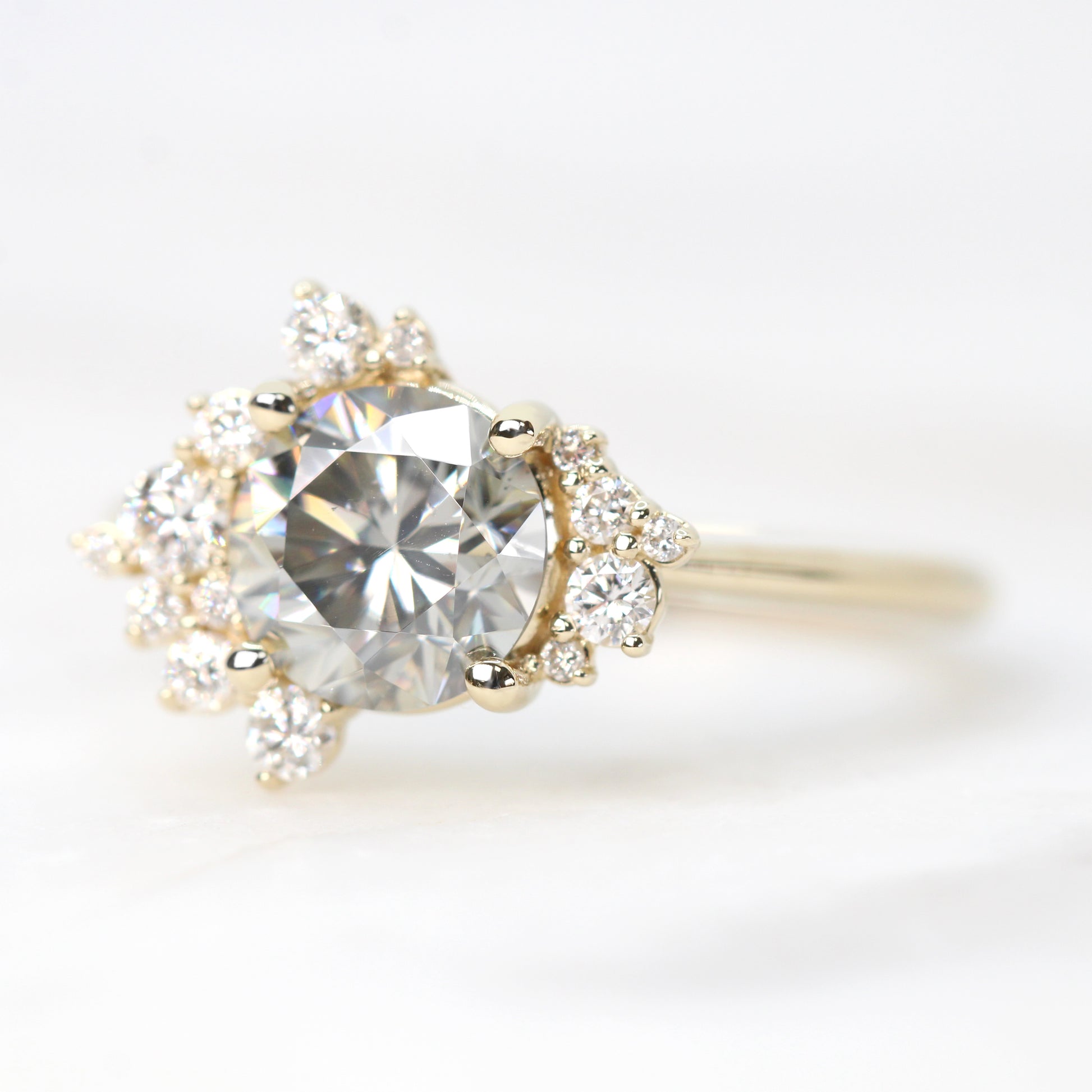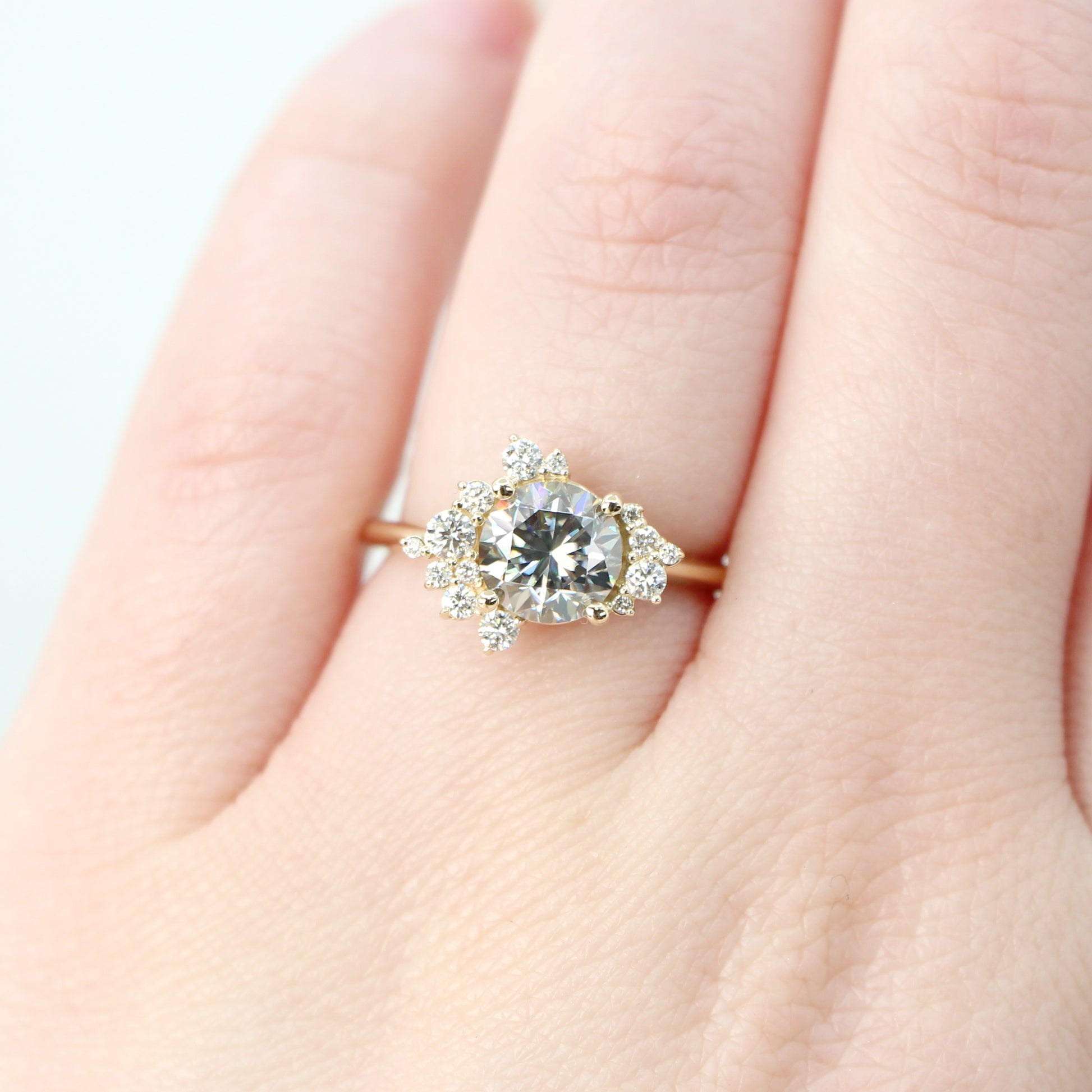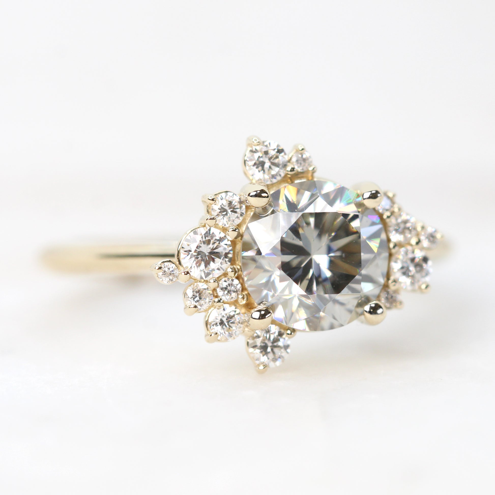 Orion Ring with a Round Gray Moissanite and White Accent Diamonds - Made to Order