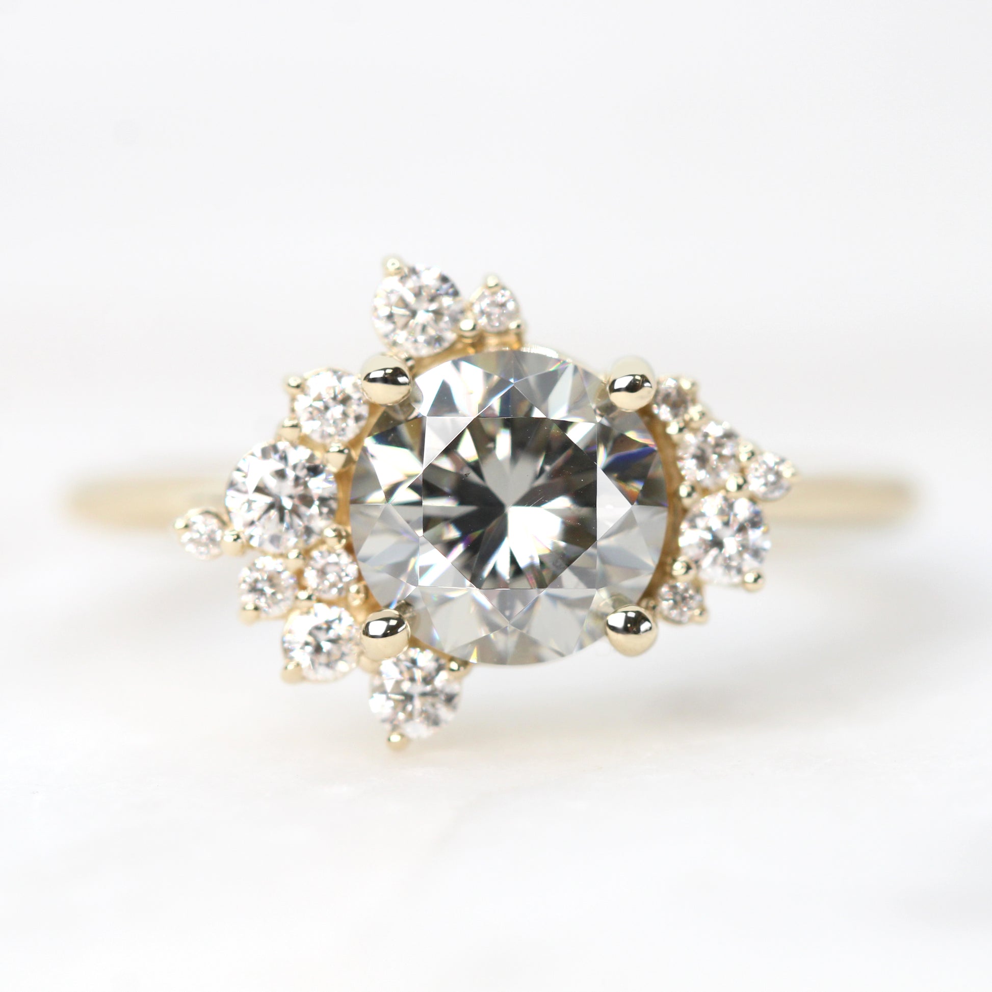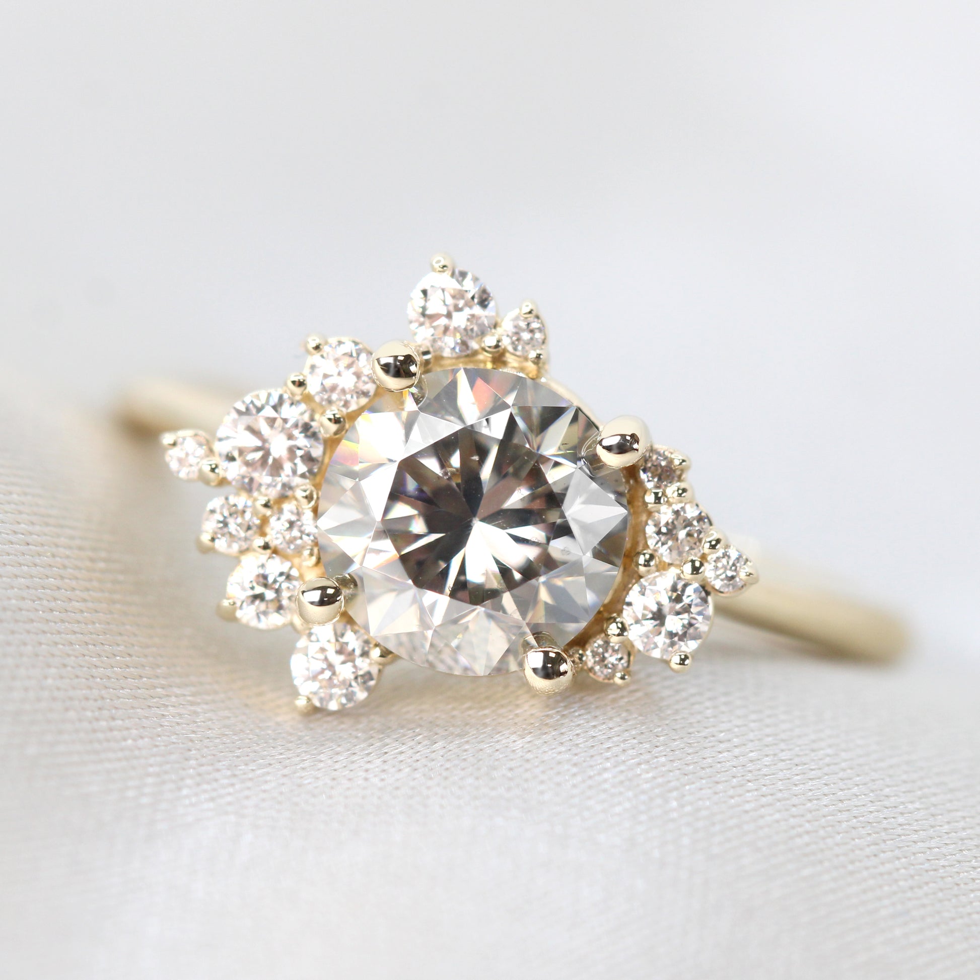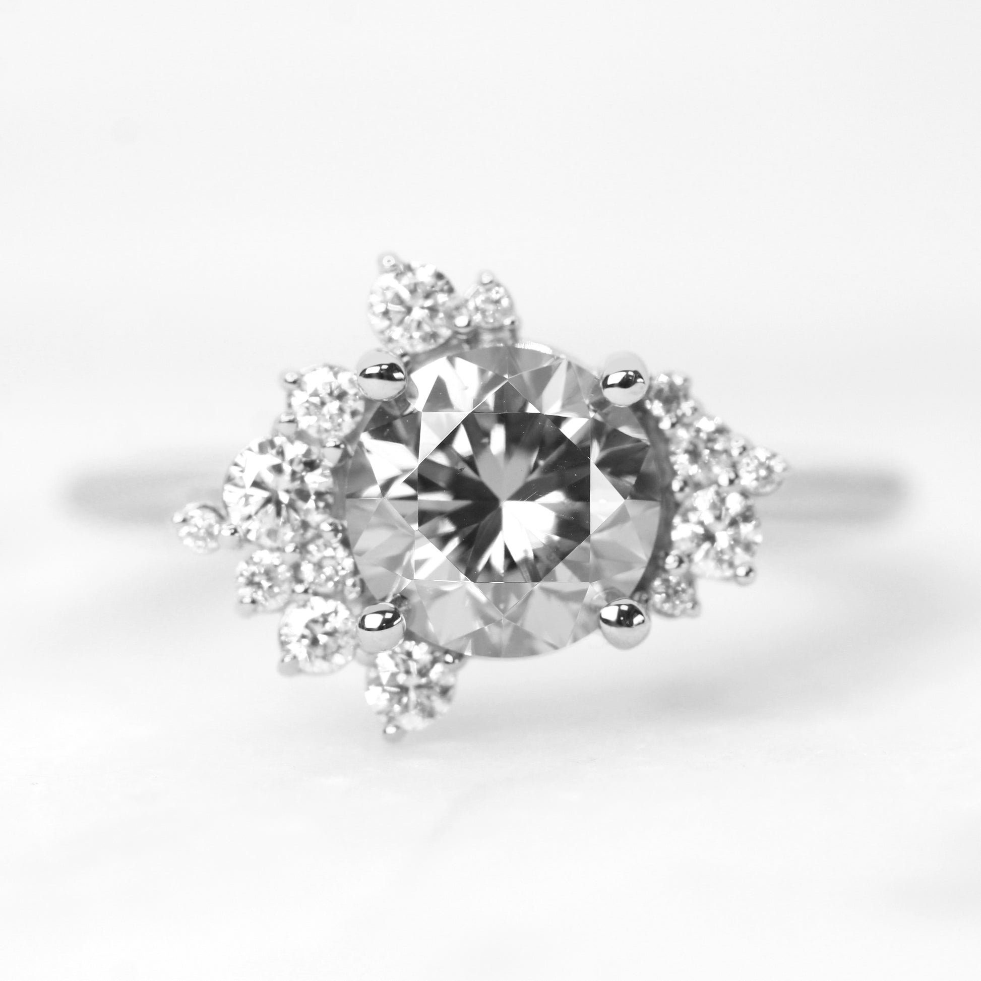 Orion Ring with a Round Gray Moissanite and White Accent Diamonds - Made to Order