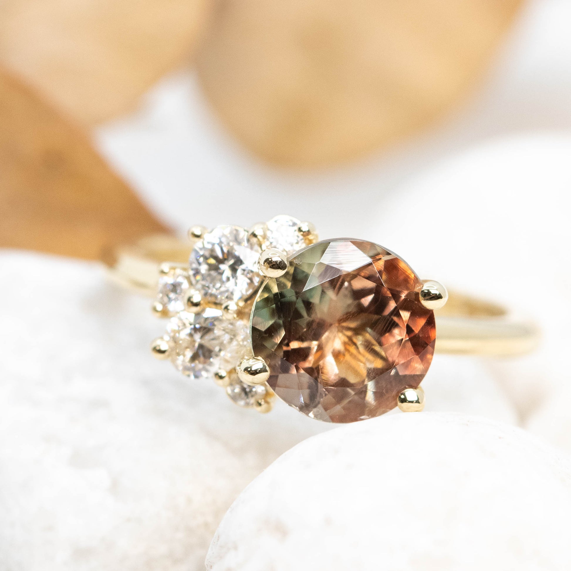 Project: Custom Abetha Ring with a 1.5 carat Green Orange Oregon Sunstone and White Accent Diamonds in 14k