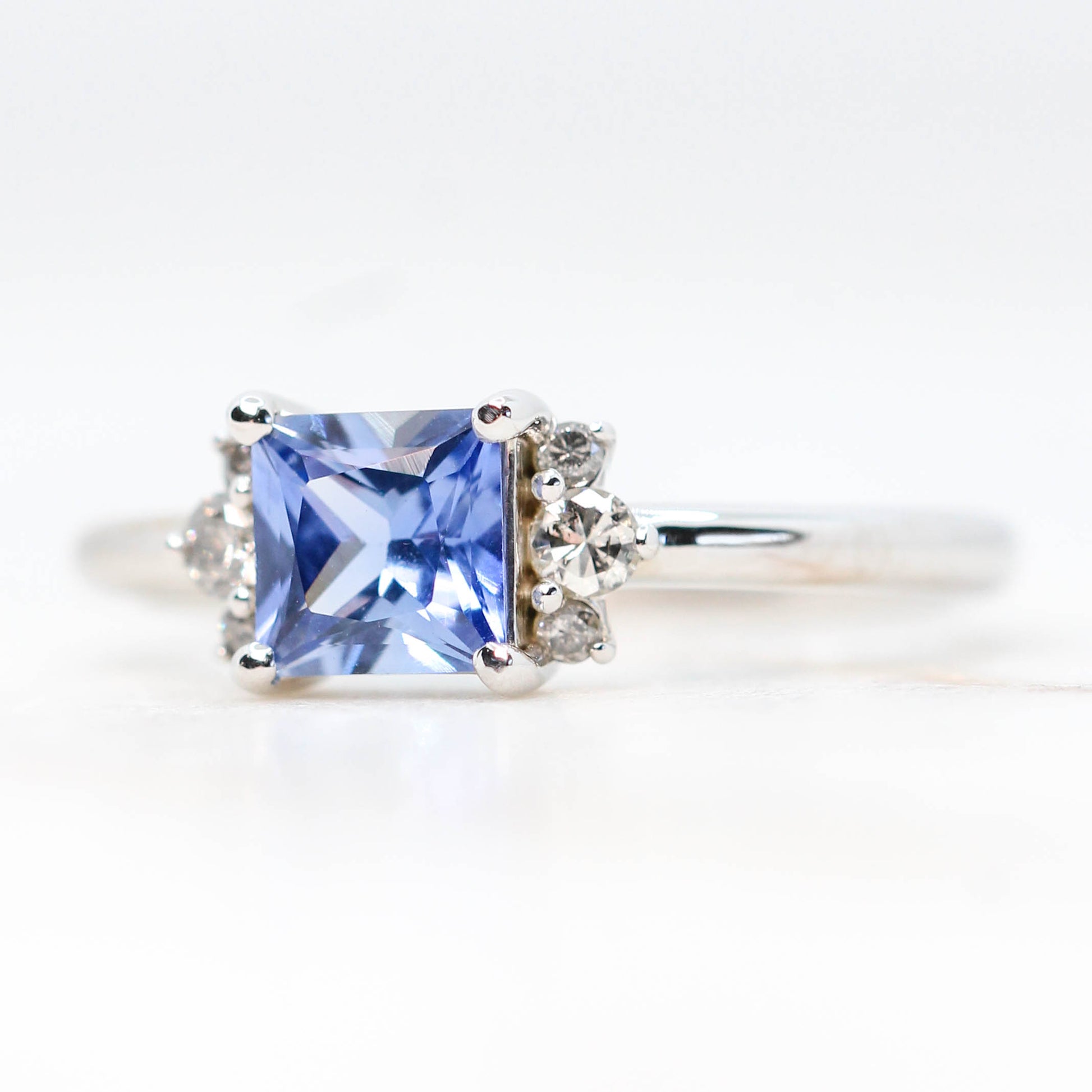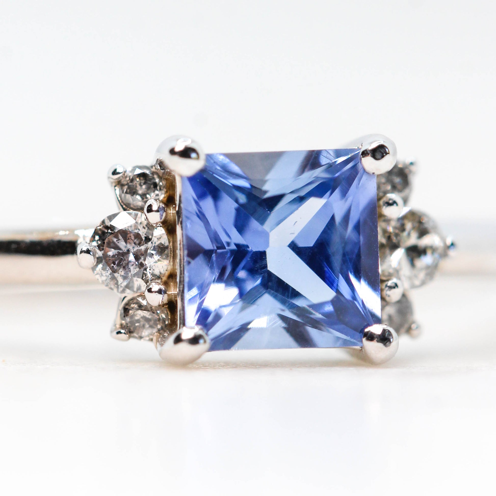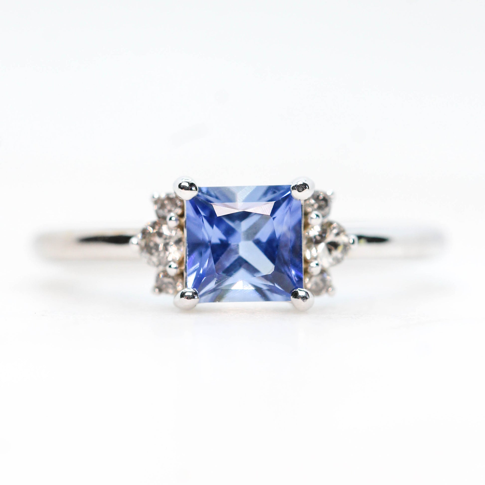 Project: Custom Loren Ring with a 1 Carat Princess Cut Blue Sapphire and White Accent Diamonds in 14k