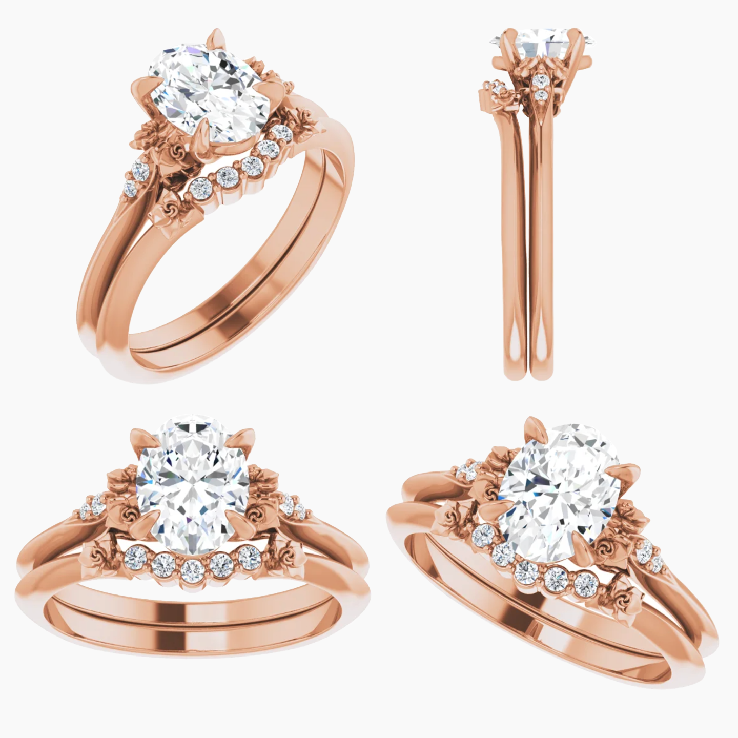 - This setting features rose and other nature inspired details with a little extra sparkle.
