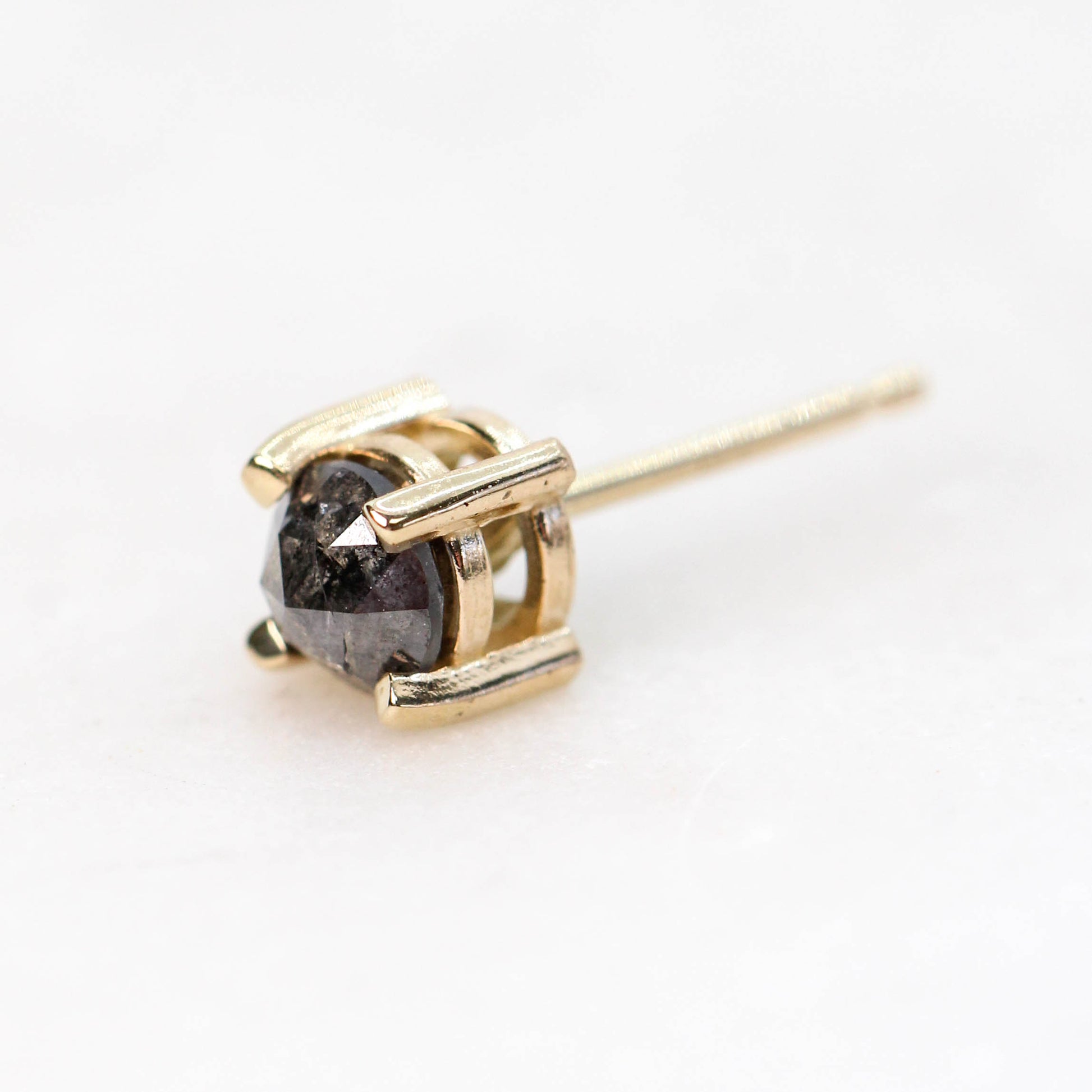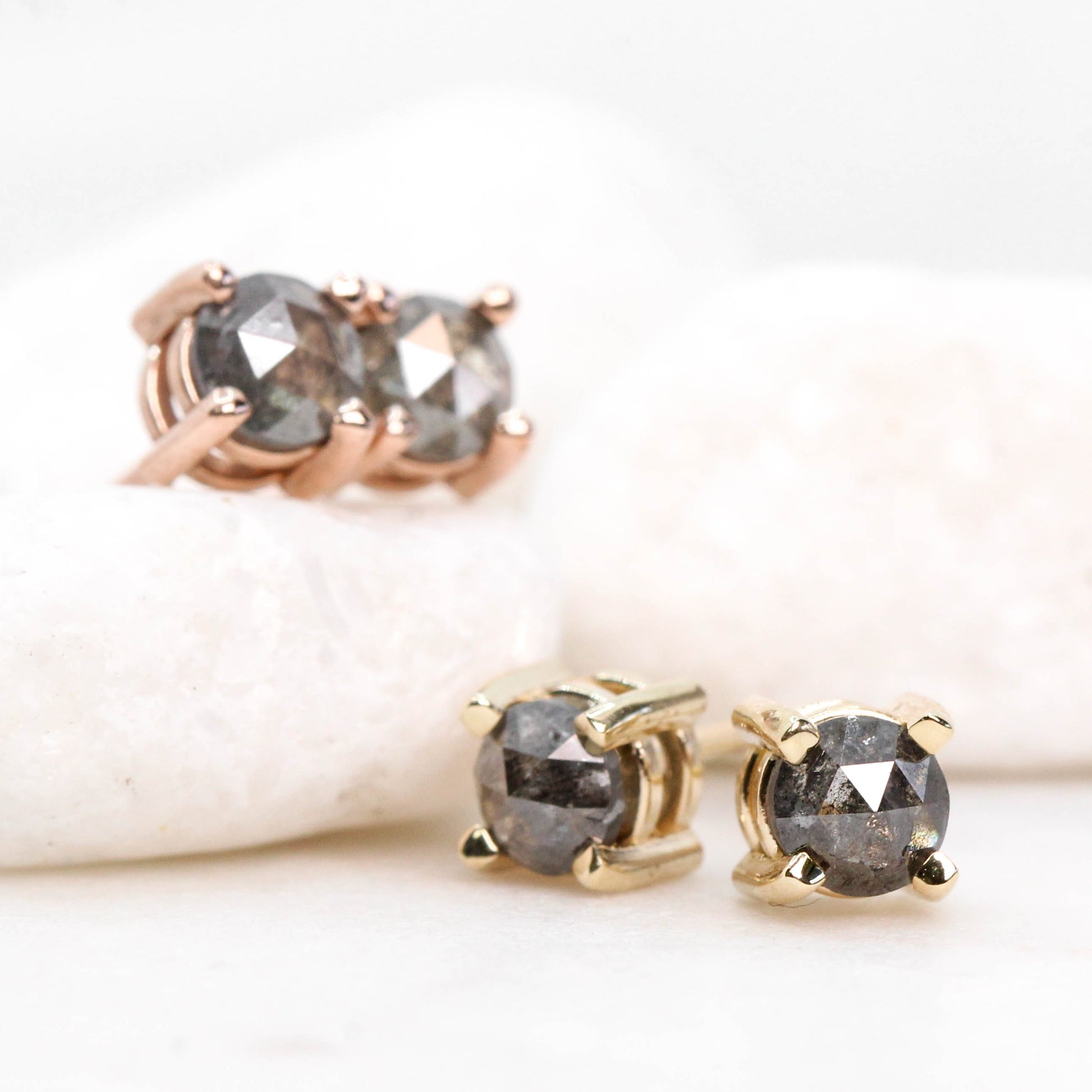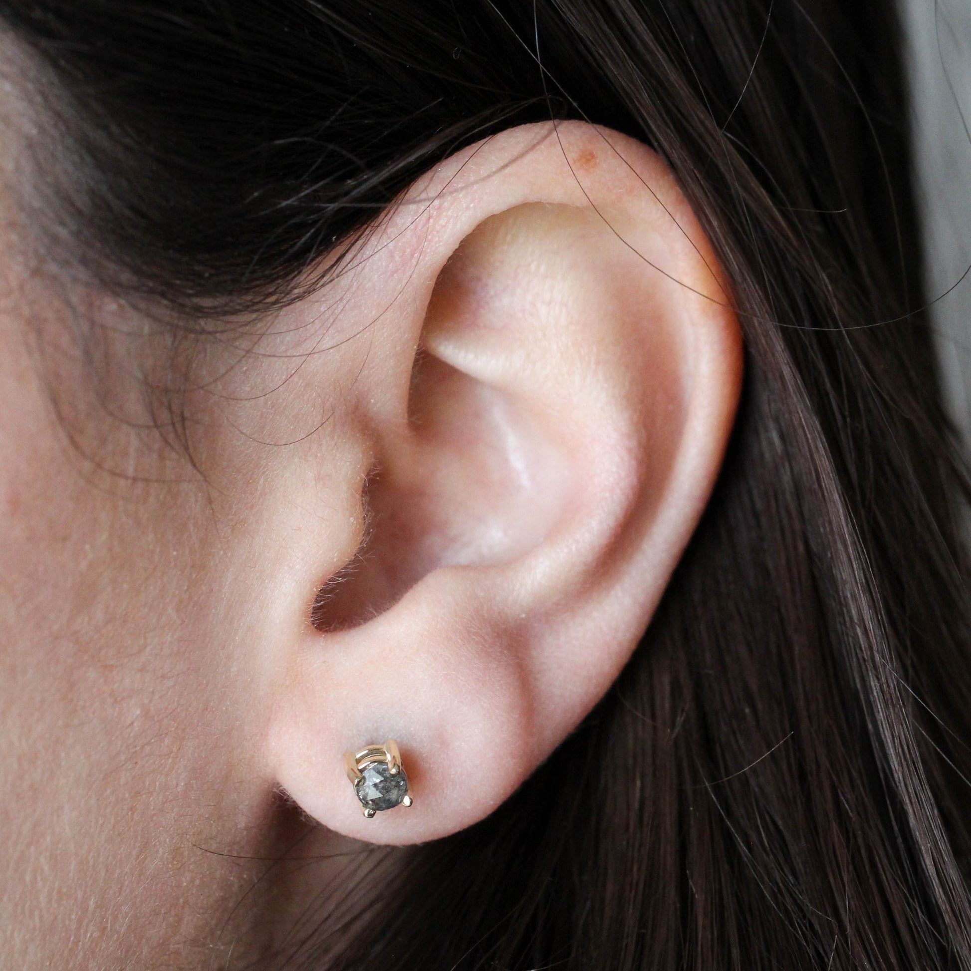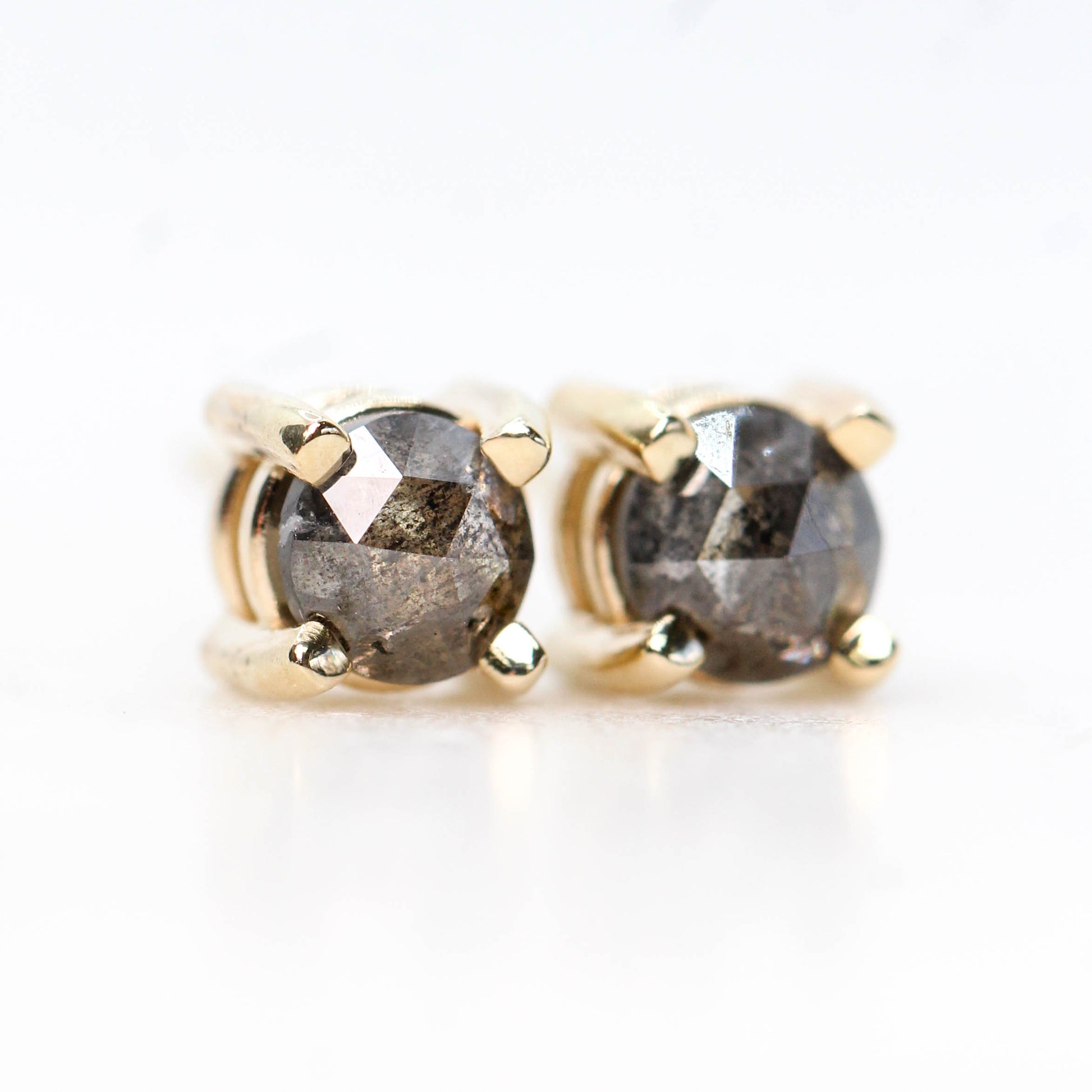 Rose Cut Gray Salt and Pepper Diamond Stud Earrings in 14k Yellow Gold - Ready to Ship