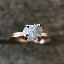 Diamonds are made of a crystalline form of pure carbon, creating the hardest mineral known, whether they are see-through or not. The diamonds we use have internal inclusions. That is why we love them. They also can have outer natural openings. These characteristics we personally embrace as beautiful, showing their nature.