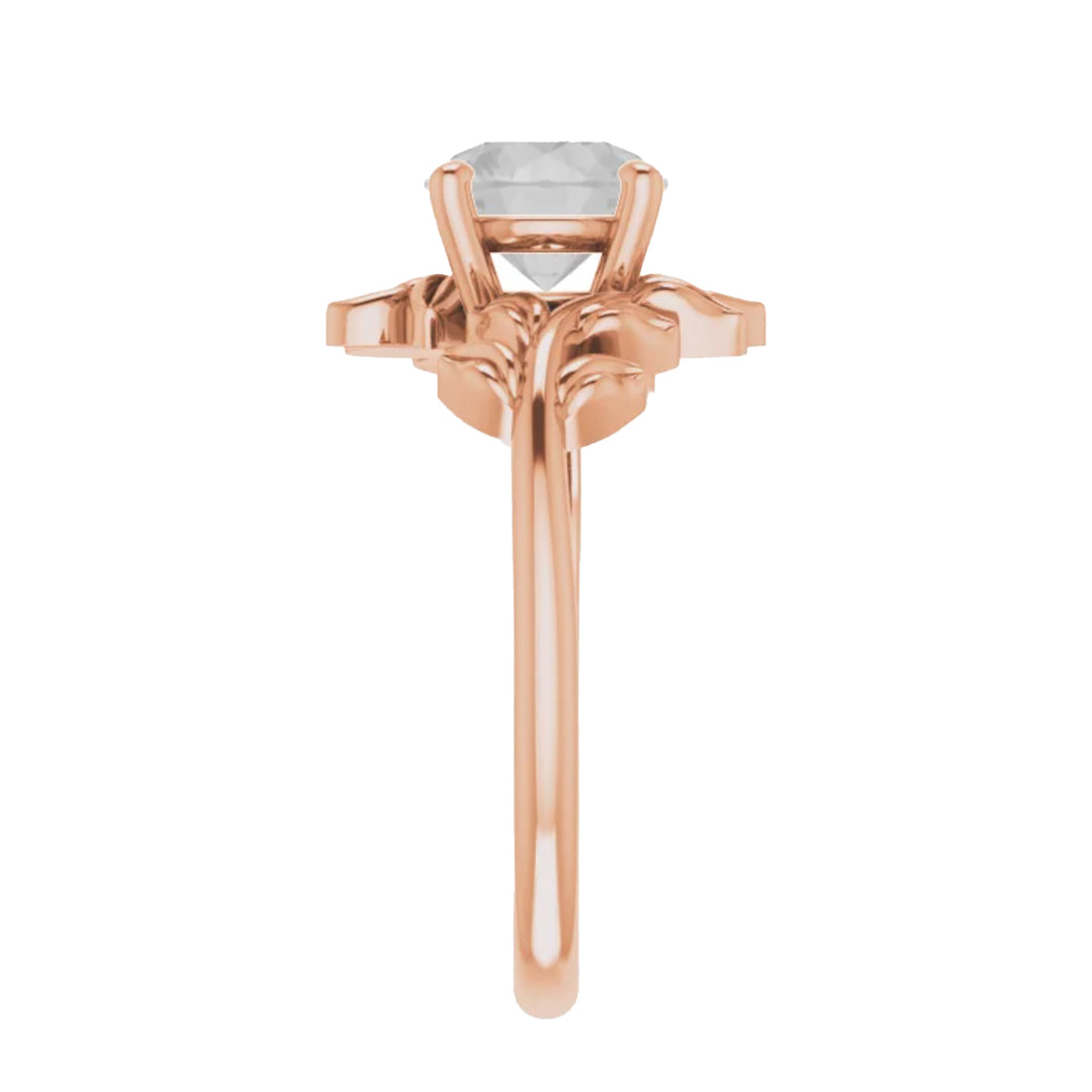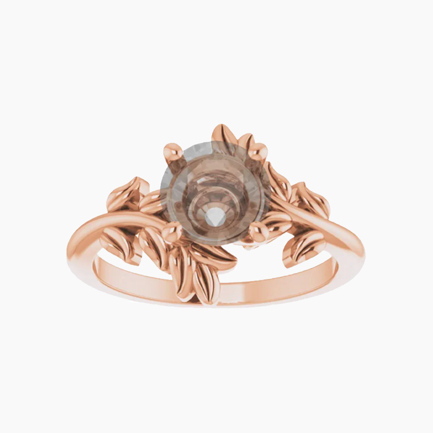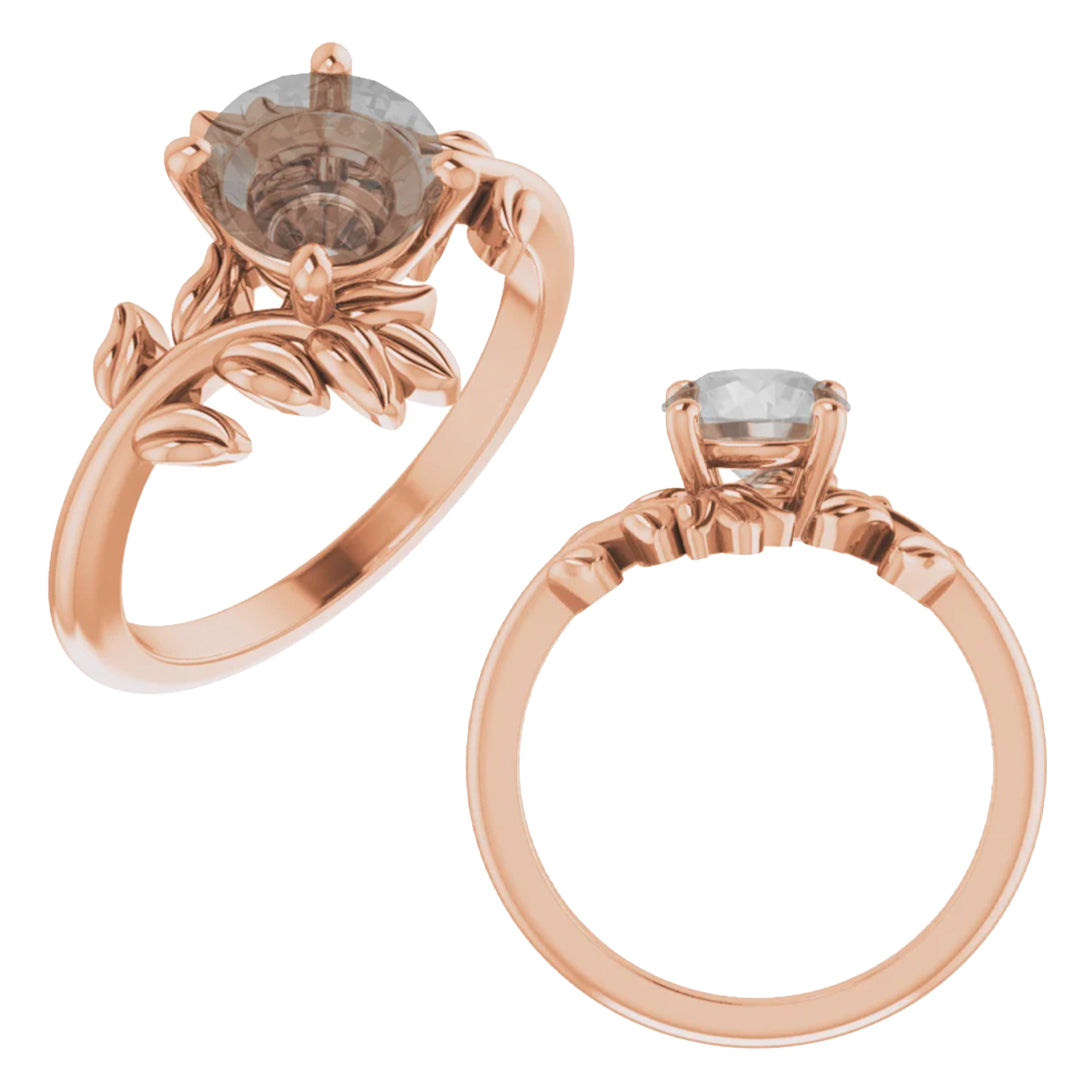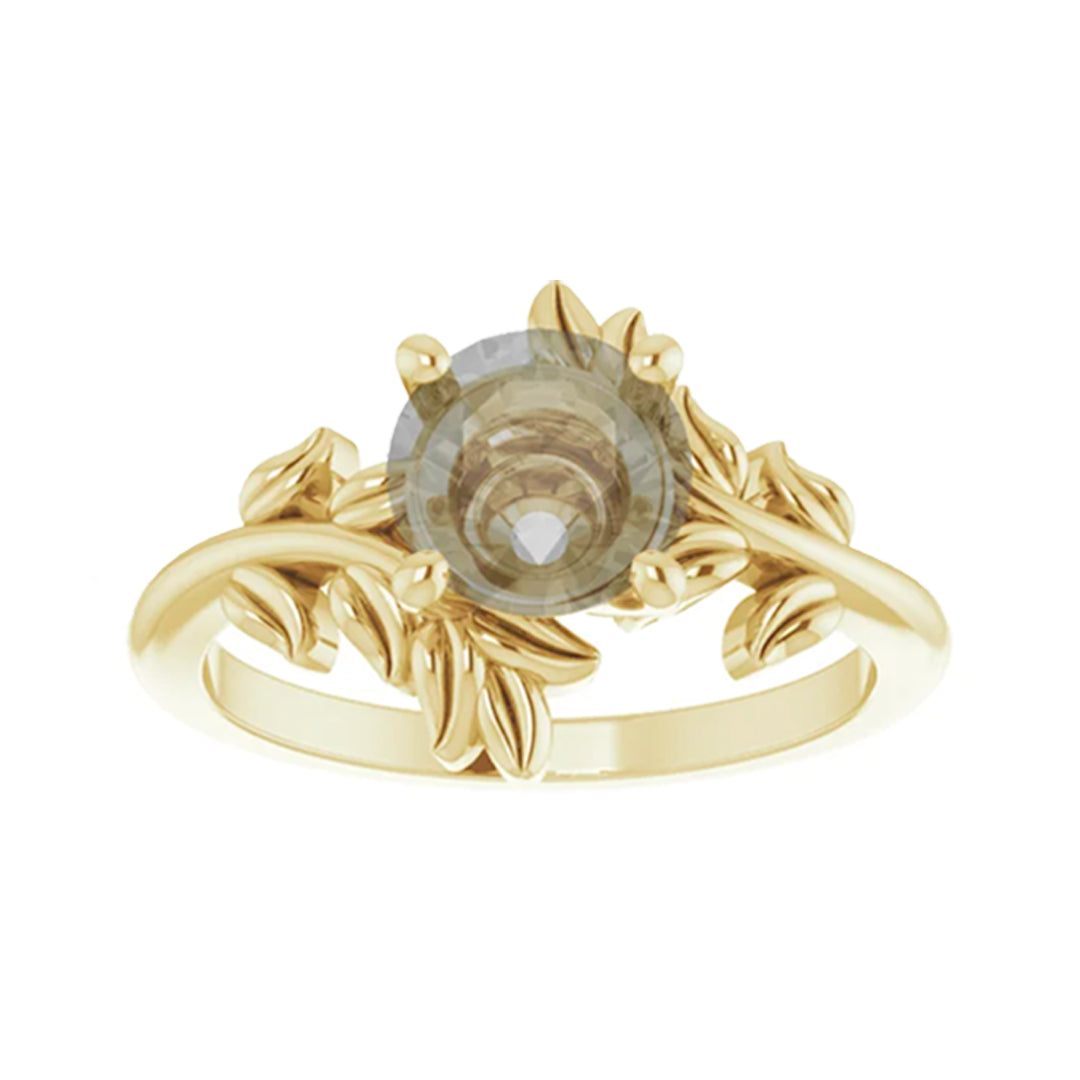 - This all metal setting has a whimsical leafy design that is perfect for the nature lovers. The metal leaves surround the center stone, and the two branches mirror one another asymmetrically.