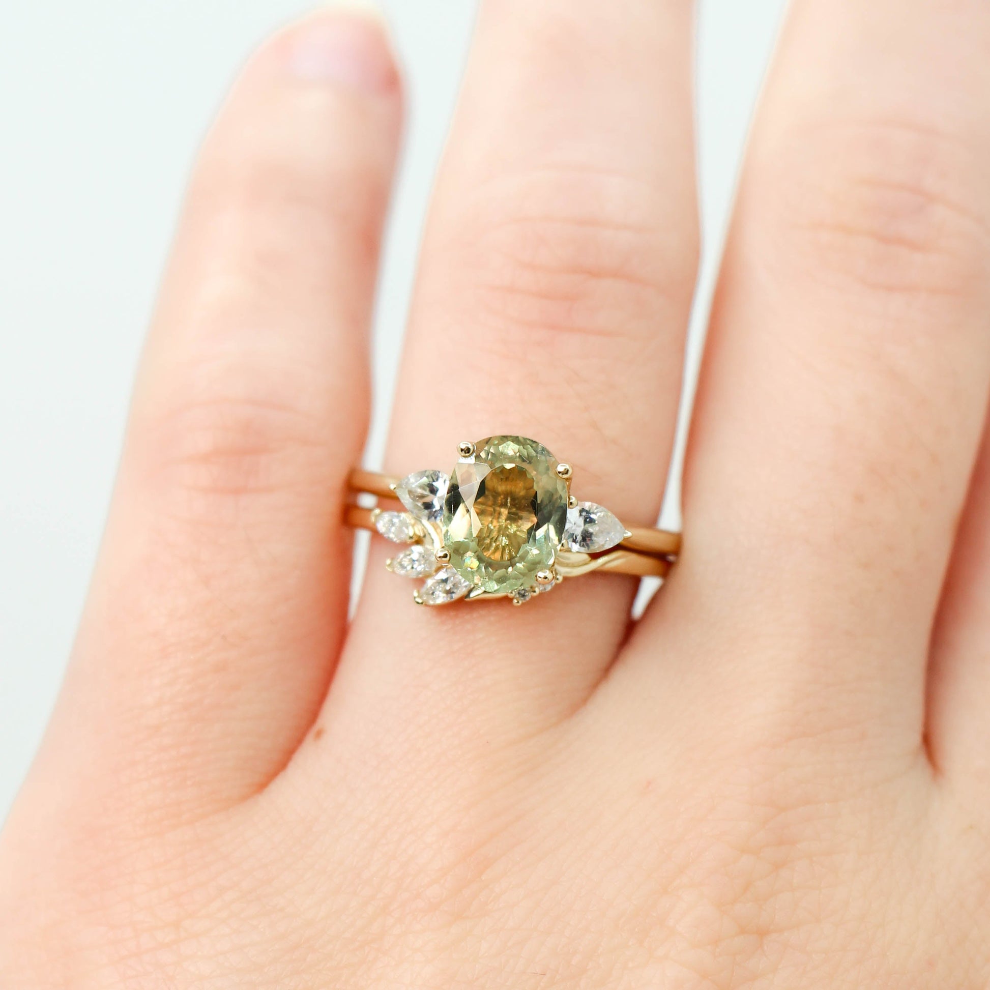 This is a personal decision that depends on what you personally value (sentiment of a birthstone vs. collector's value, for instance). As jewelers, we want you to think about how often it will be worn and how active you are. We understand that there has to be a balance of aesthetic versus durability when designing such an important piece, but we recommend the strongest stones that are 9 Mohs or above for everyday wear - diamond, moissanite, and sapphire.