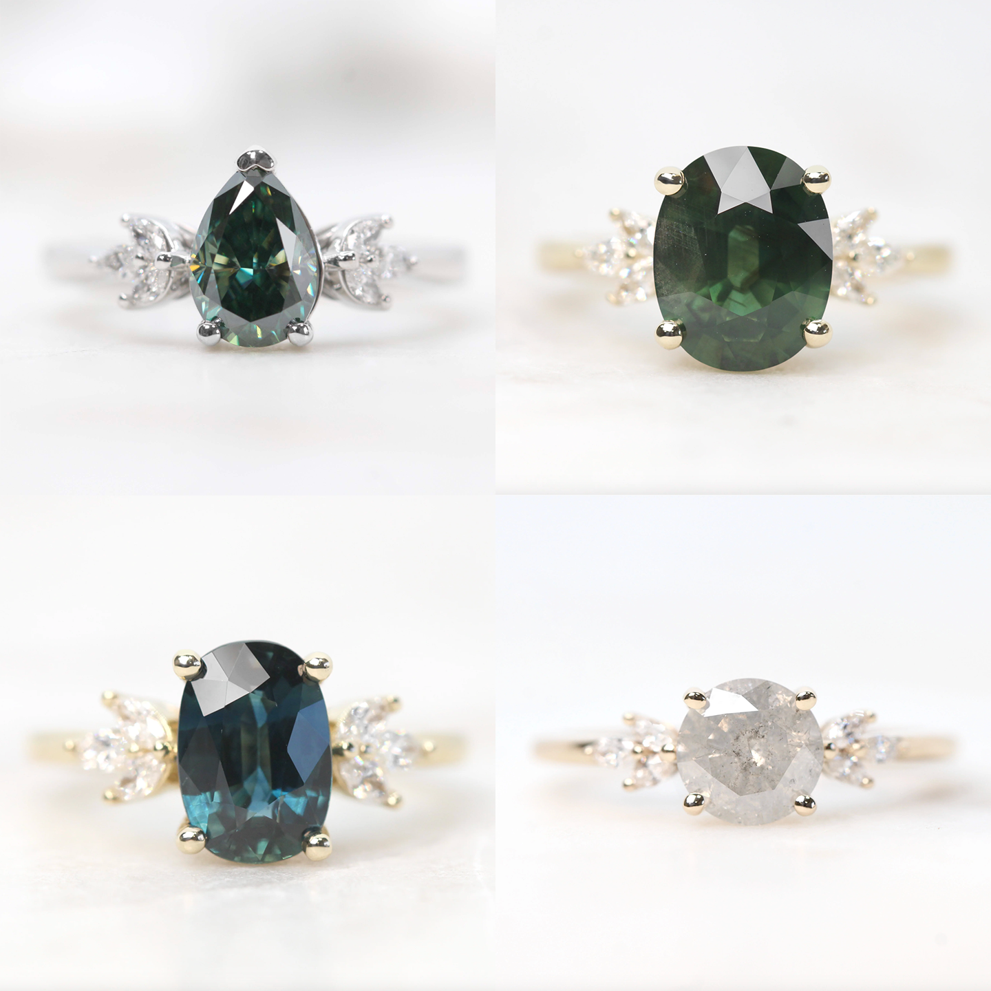 Pieces that are customized cannot be returned, and anything customized for you, is just for you. Please consider coming to visit us at our studio in Wilmington, Delaware to view stones and settings in person! We are also happy to do a Zoom appointment or send videos to help you with your purchase.