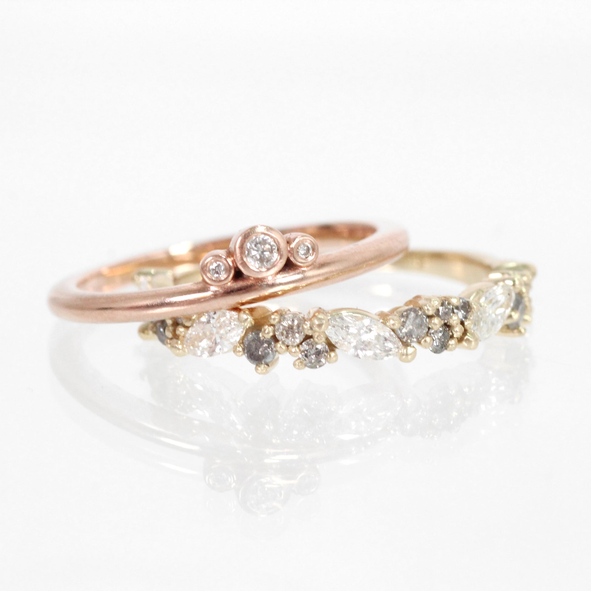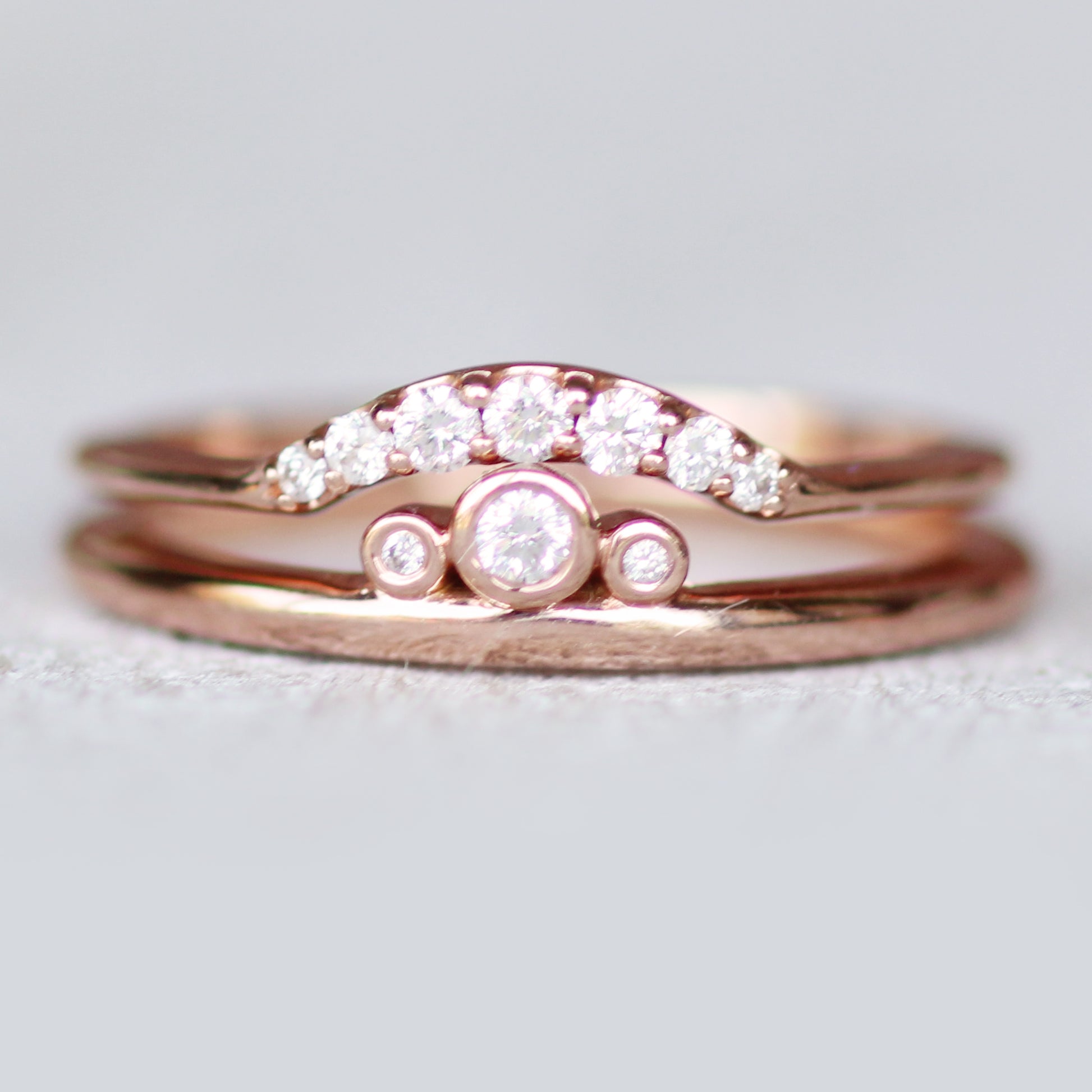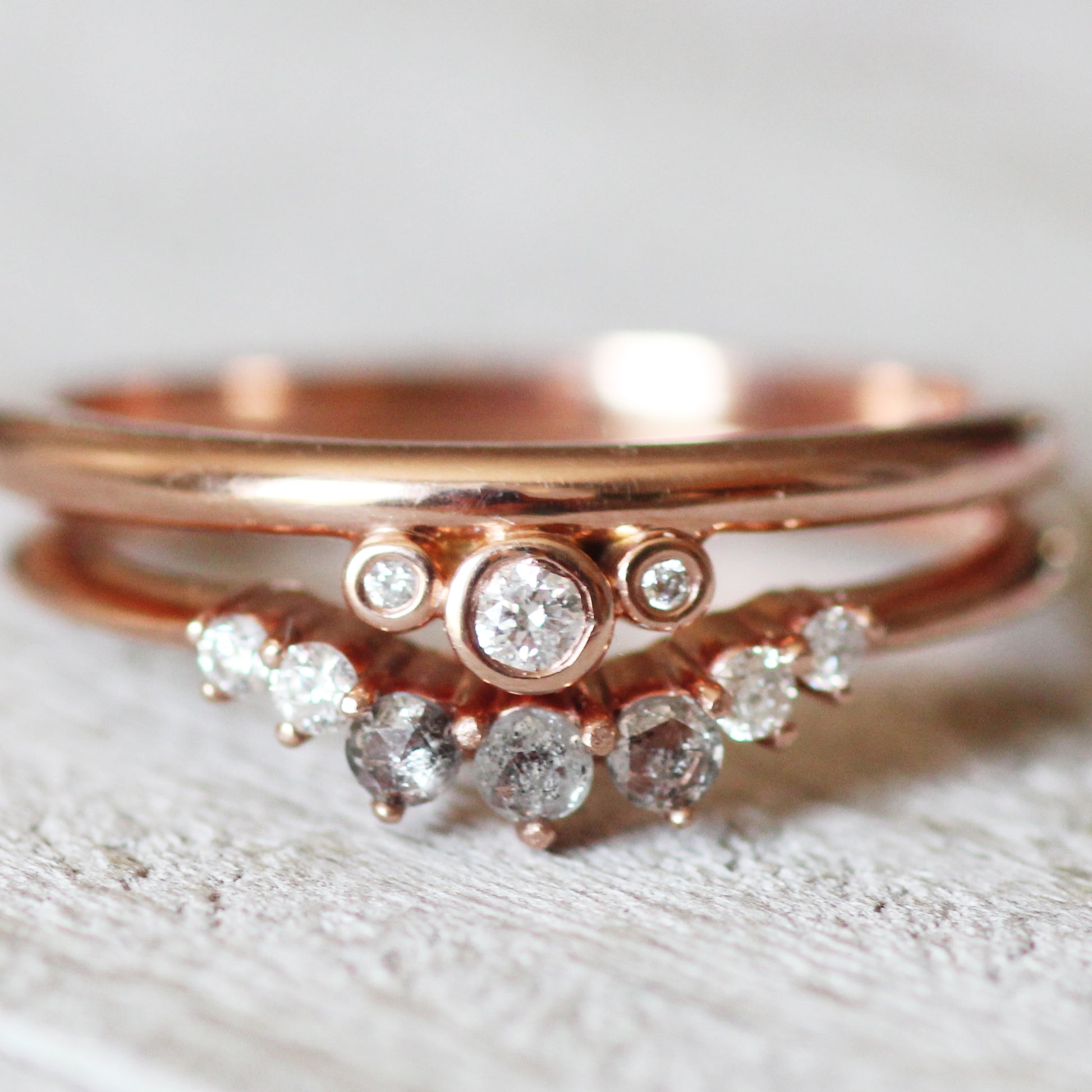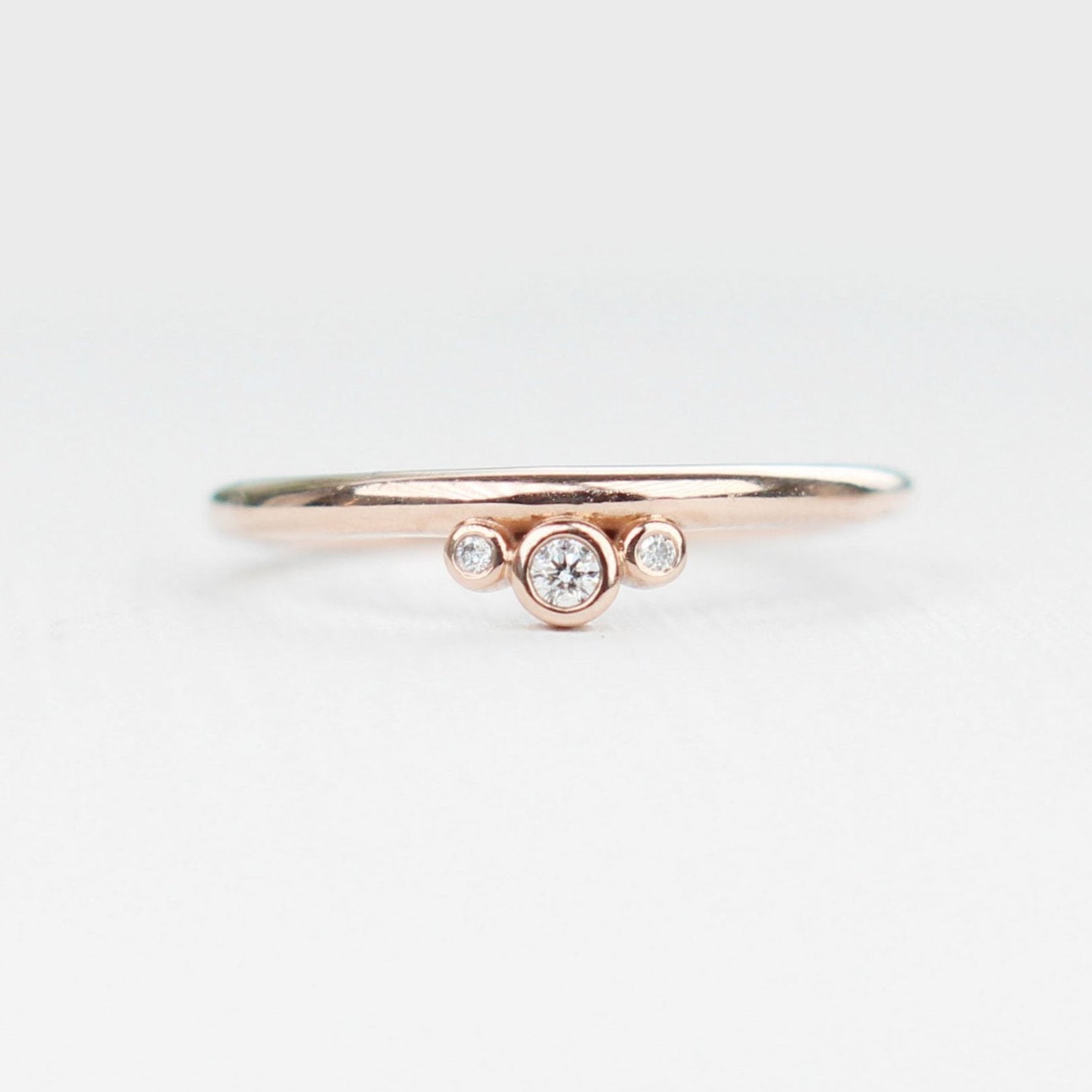 • This simple, bezel set three stone band is the perfect lightweight, low-set piece for everyday wear or wearing in a stack!