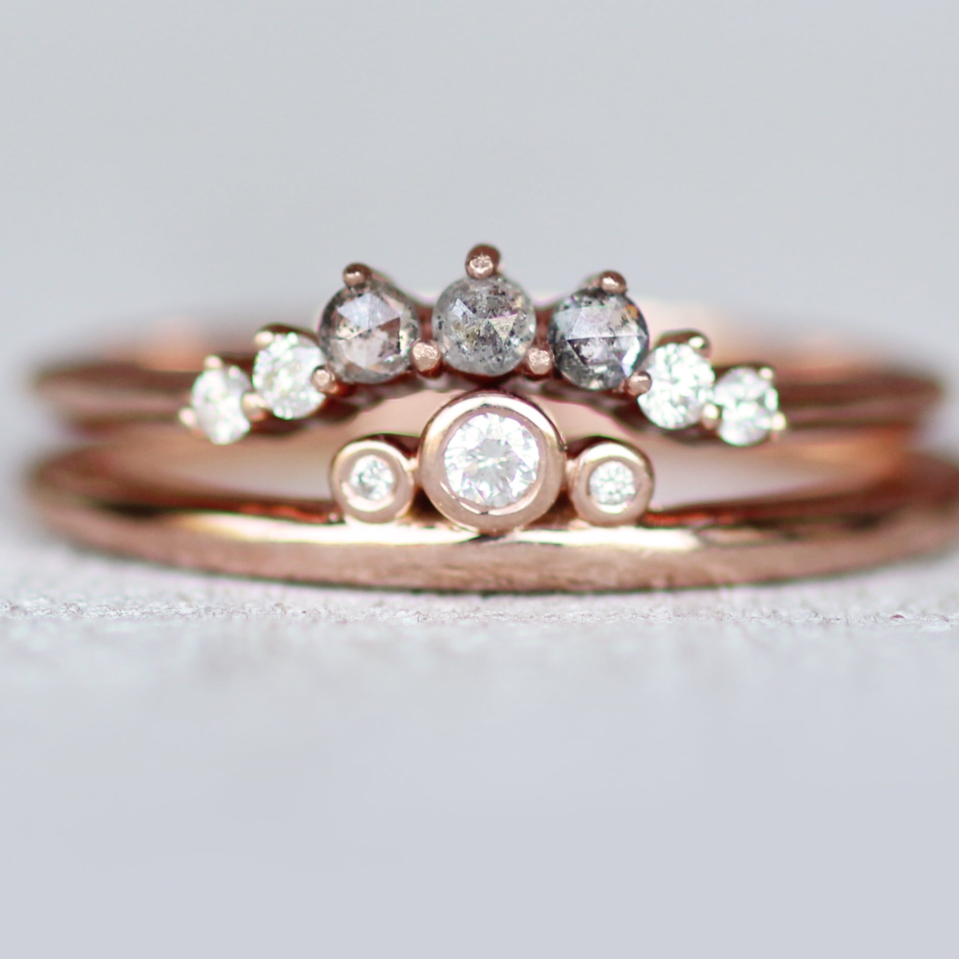 At Midwinter Co. Jewelry, we are a sustainable and tiny but trusted small business to create your unique and alternative bride type engagement rings. We are a leader in the salt and pepper diamond world, a quiet luxury brand that works one on one with you to design the most unique, gorgeous, modern jewelry. Midwinter Co. is also one of the only brands that specializes in acutely unique gemstones such as bi-color sapphires, teal green blue sapphires, mossy aquamarine, mossy agate, black tourmaline in quartz, gold in quartz, tourmaline in unique colors, gray sapphires, gray spinel, dark gray spinel, dark gray diamonds, black diamonds, black speckled diamonds, celestial diamonds, galaxy diamonds, dendritic agate, dendritic opal, dendritic quartz, branchy gemstones, quartz with black star hollandite, alexandrite, garnet, peridot with or without tourmaline, harmony quartz aka melody quartz aka seven stone quartz, morganite, emerald, topaz, misty white diamonds, white blue diamonds, opalescent diamonds, opalescent sapphires, parti sapphires, and more. Within our walls, we carry only a small select of stock as much of our work is custom. We custom design and personalize every ring setting/mounting to fit the unique gemstones and diamonds we carry. We can design you a custom ring set based off of a drawing or screen shots, aesthetics, themes, and more. We also have bridal necklaces, bridal earrings, mothers earrings, bridesmaids earrings, modern asymmetrical sapphire diamond earrings and more. Our small team is mighty and caring. Midwinter Co. is top rated with 5/5 100% 5 star on google. Drive 25-35 minutes from Philadelphia to visit our showroom to see our in stock pieces and stones. We can create: couples rings, rings for couples, rings for twins, twins rings, ring sets for couples, matching ring sets, custom stacking rings, custom stacking ring sets, bridal sets, custom right hand rings, custom mother gemstone rings, vintage style rings, modern style engagement rings, rings for the alt-bride, etc. We are LGBTQIA+ friendly, husband and wife owned. Our brand has been featured on E! News, Refinery 29, Vogue UK & magazines nation and internationally. We hope to be a small part of your story. Thank you for being a big part of ours!