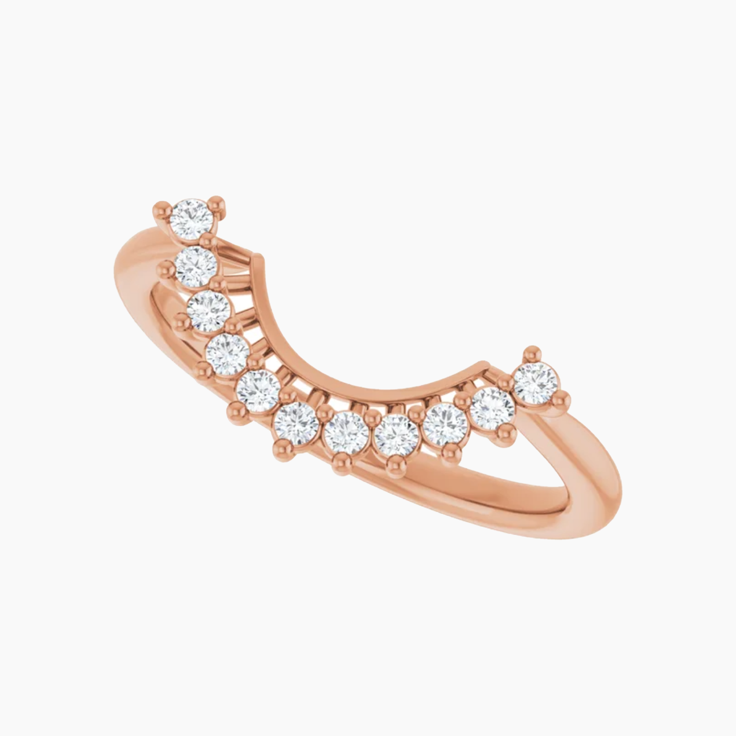 - A contour band with round diamonds to highlight halo engagement rings