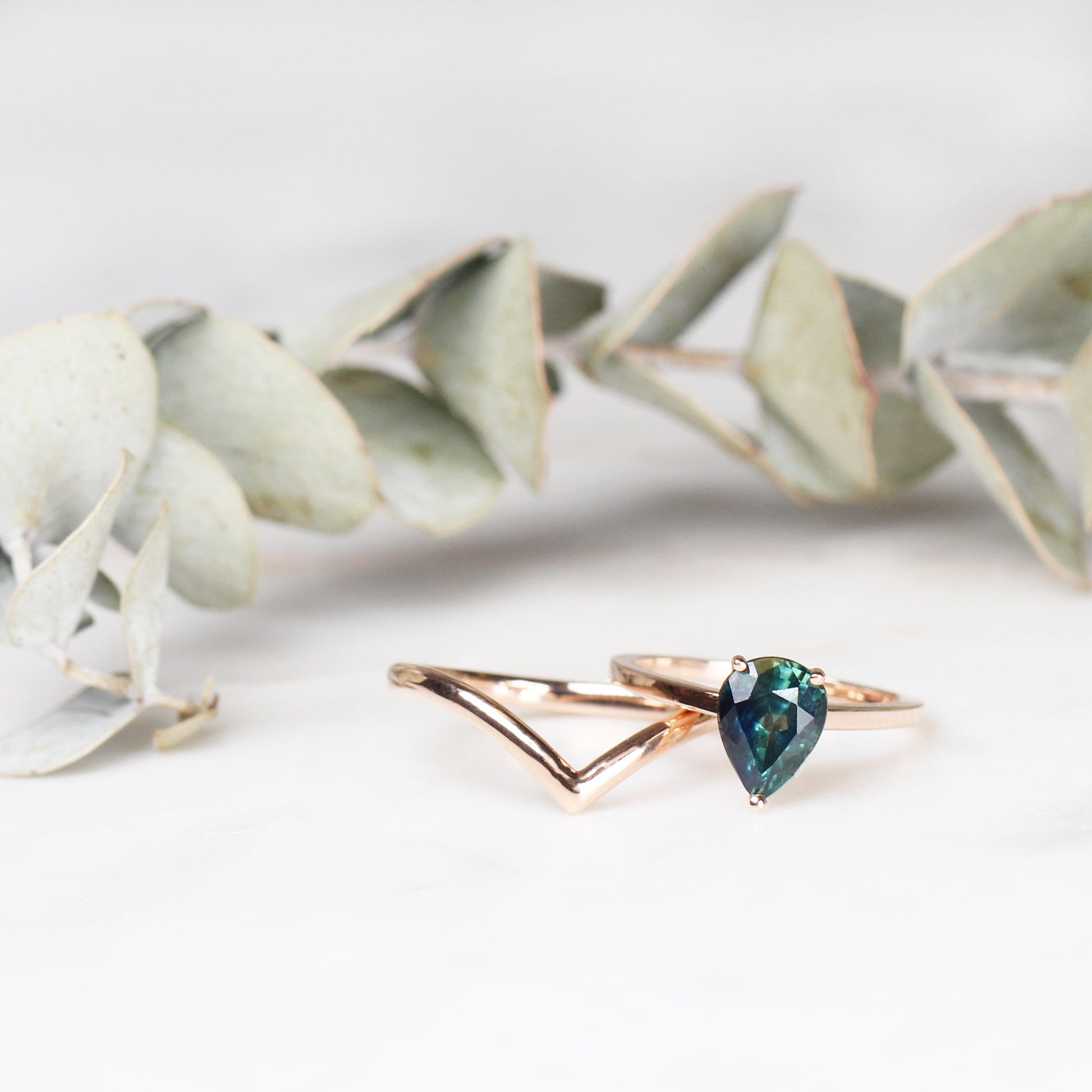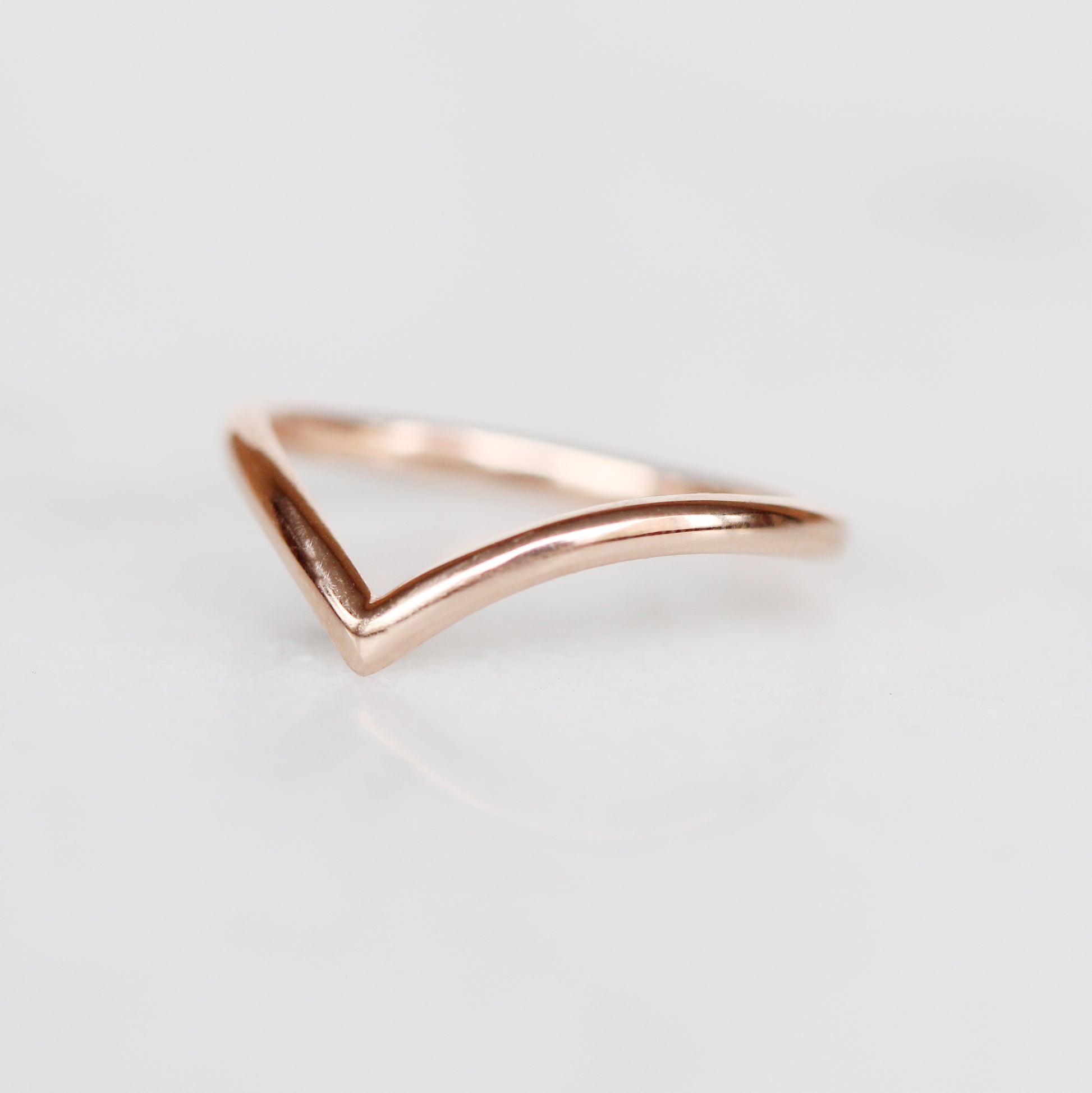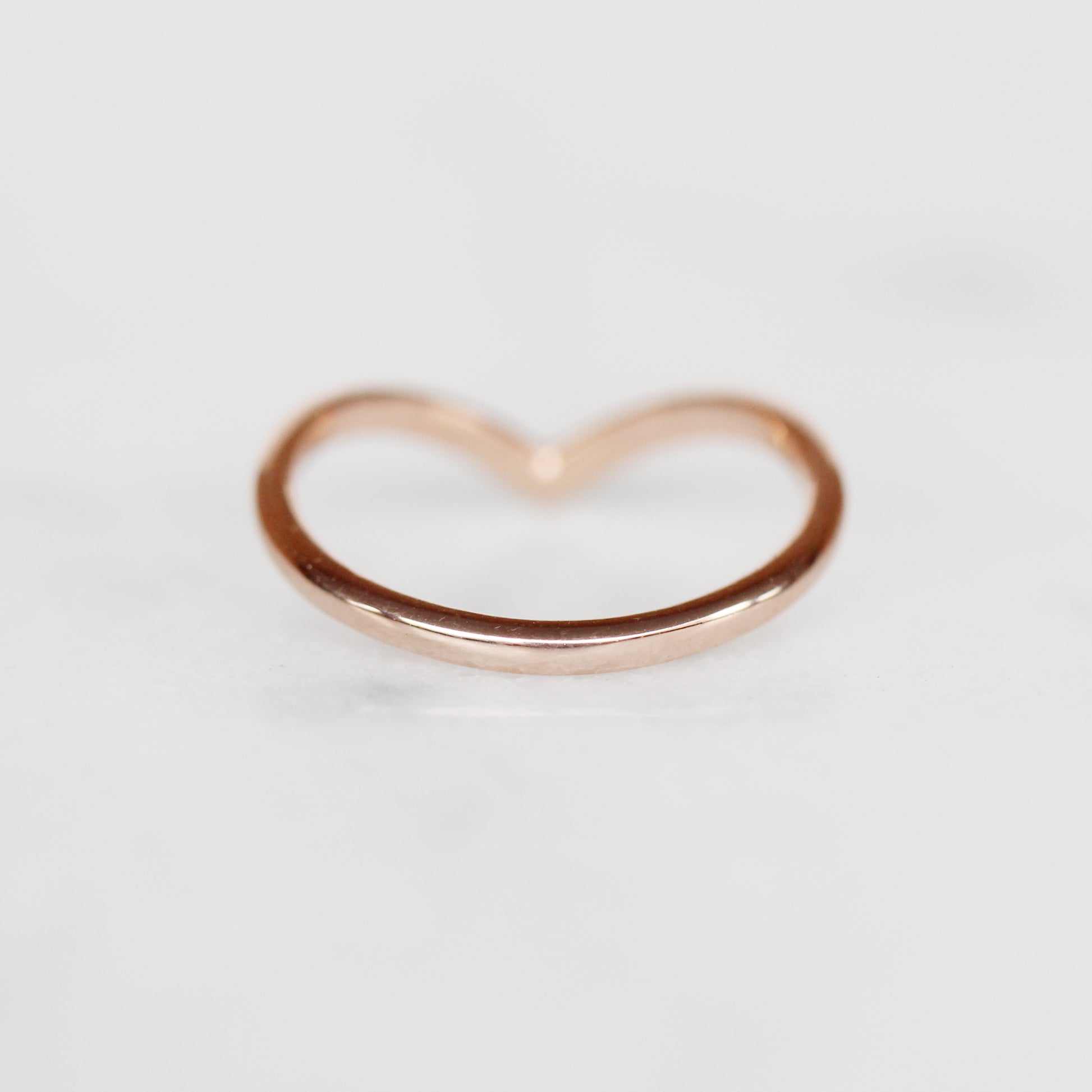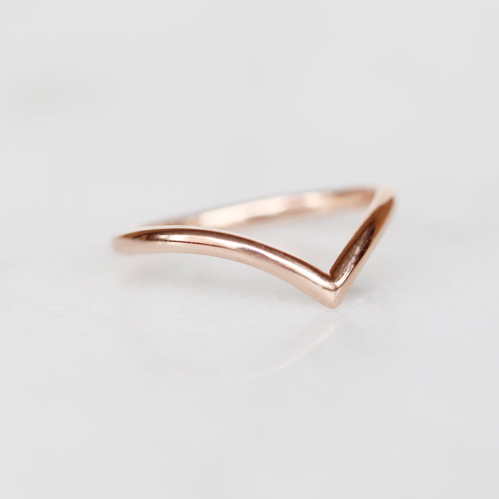 • A classic metal v-contour band that creates a dynamic and dainty look when worn with other rings