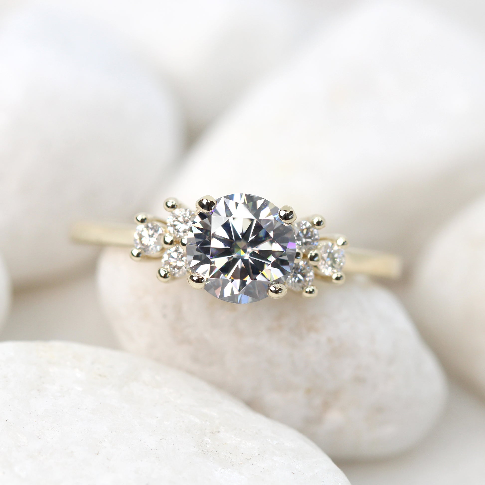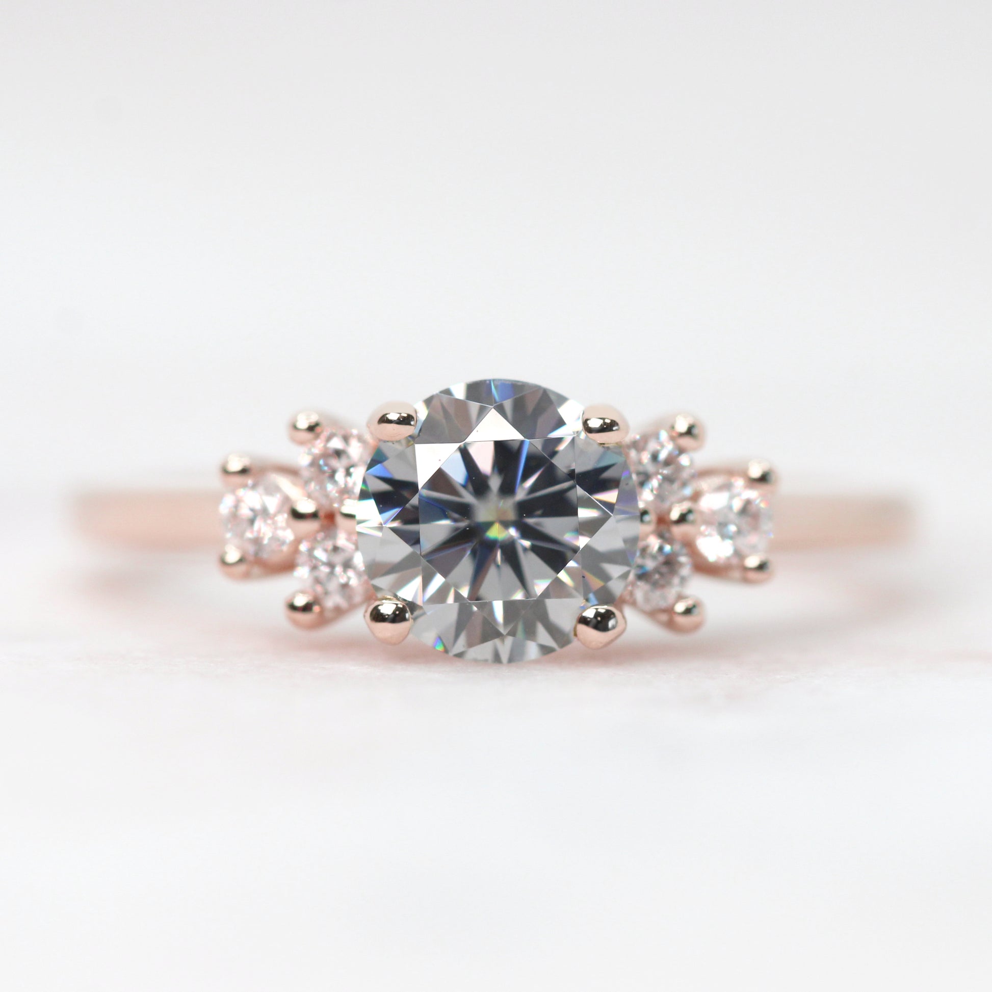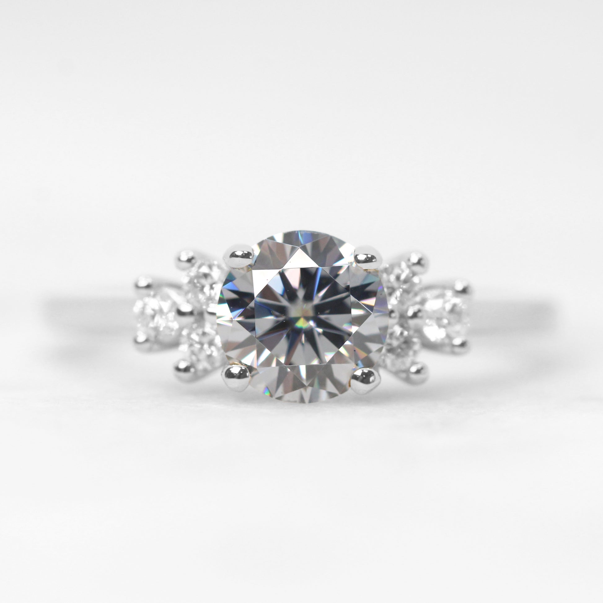 Veragene Ring with a 1 Carat Round Gray Moissanite and White Accent Diamonds - Made to Order